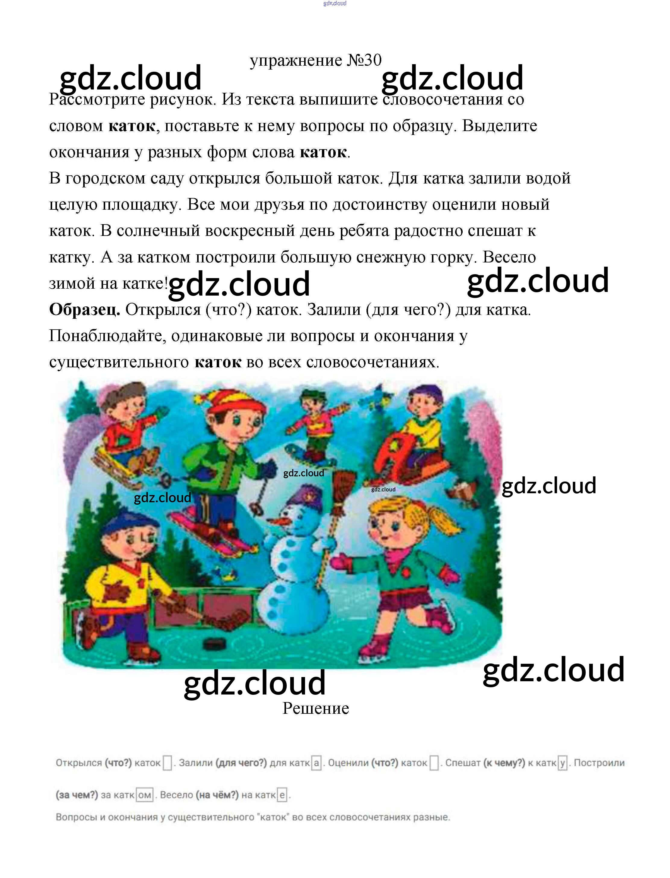 Ответ на задание 30 Учебник Русский язык за 3 (третий) класс Климанова, Бабушкина Перспектива 2019 Часть 1, 2