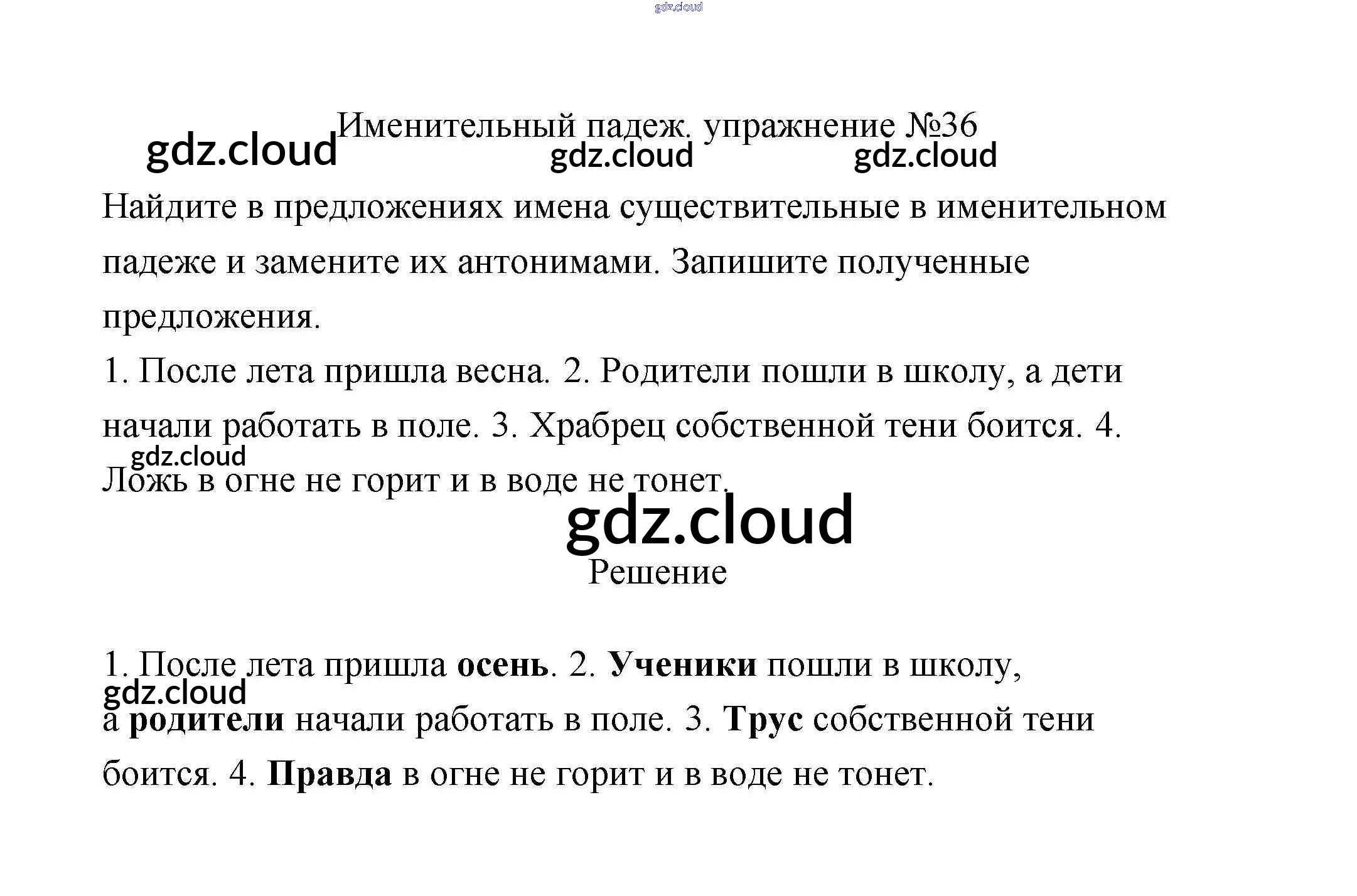 Ответ на задание 36 Учебник Русский язык за 3 (третий) класс Климанова, Бабушкина Перспектива 2019 Часть 1, 2