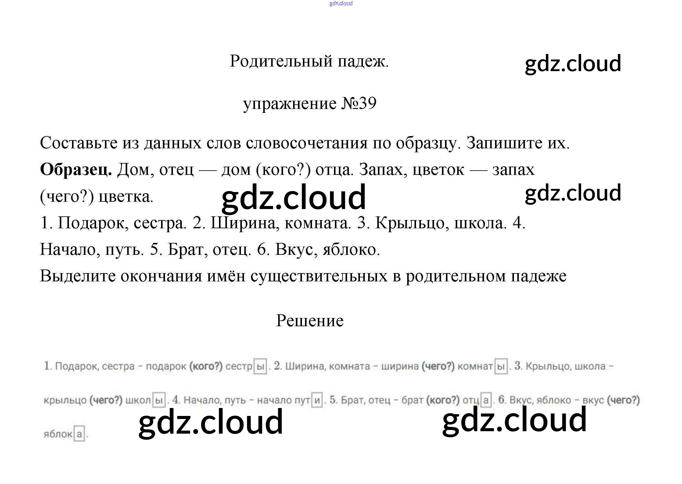 Ответ на задание 39 Учебник Русский язык за 3 (третий) класс Климанова, Бабушкина Перспектива 2019 Часть 1, 2