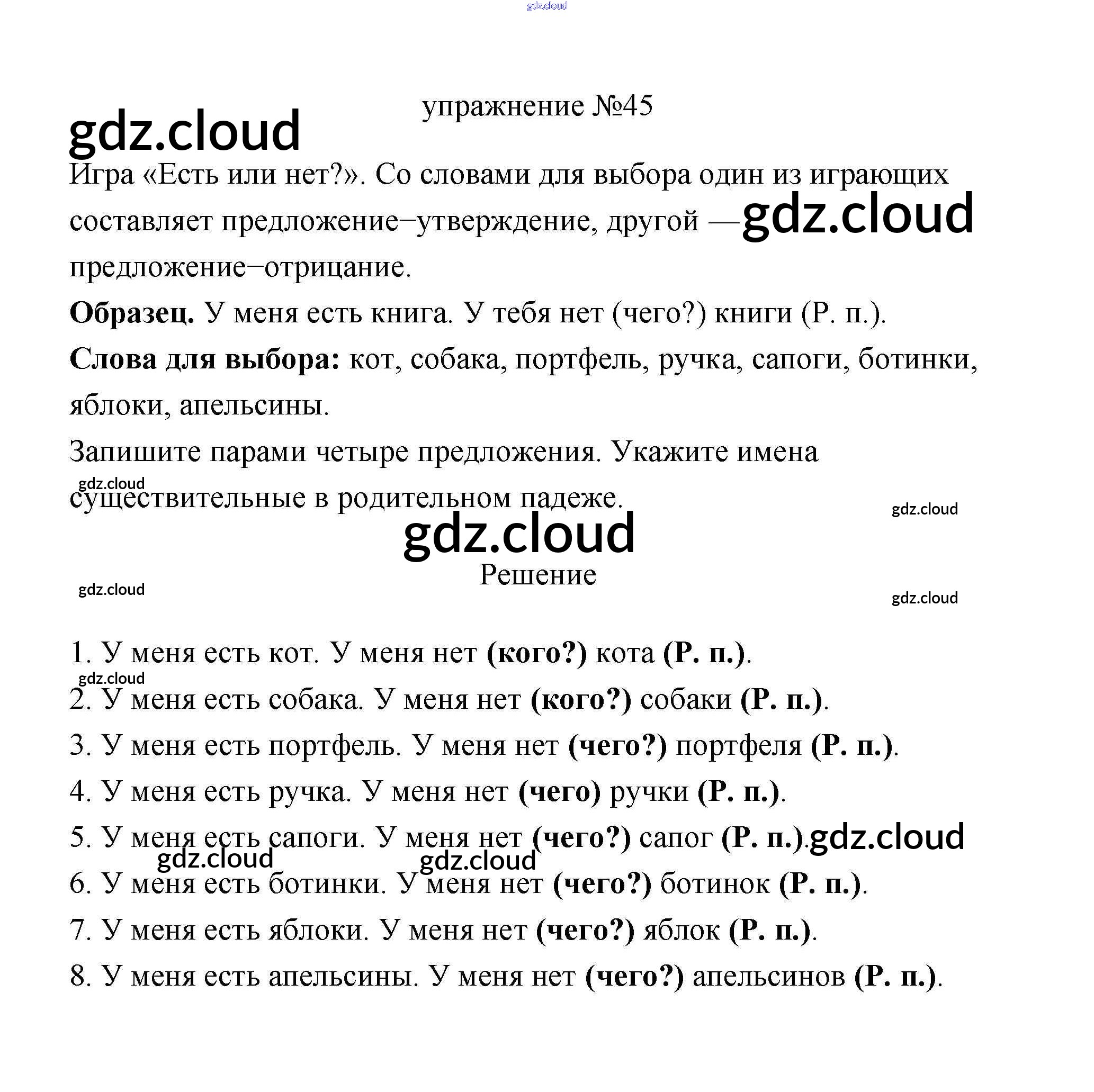 Ответ на задание 45 Учебник Русский язык за 3 (третий) класс Климанова, Бабушкина Перспектива 2019 Часть 1, 2