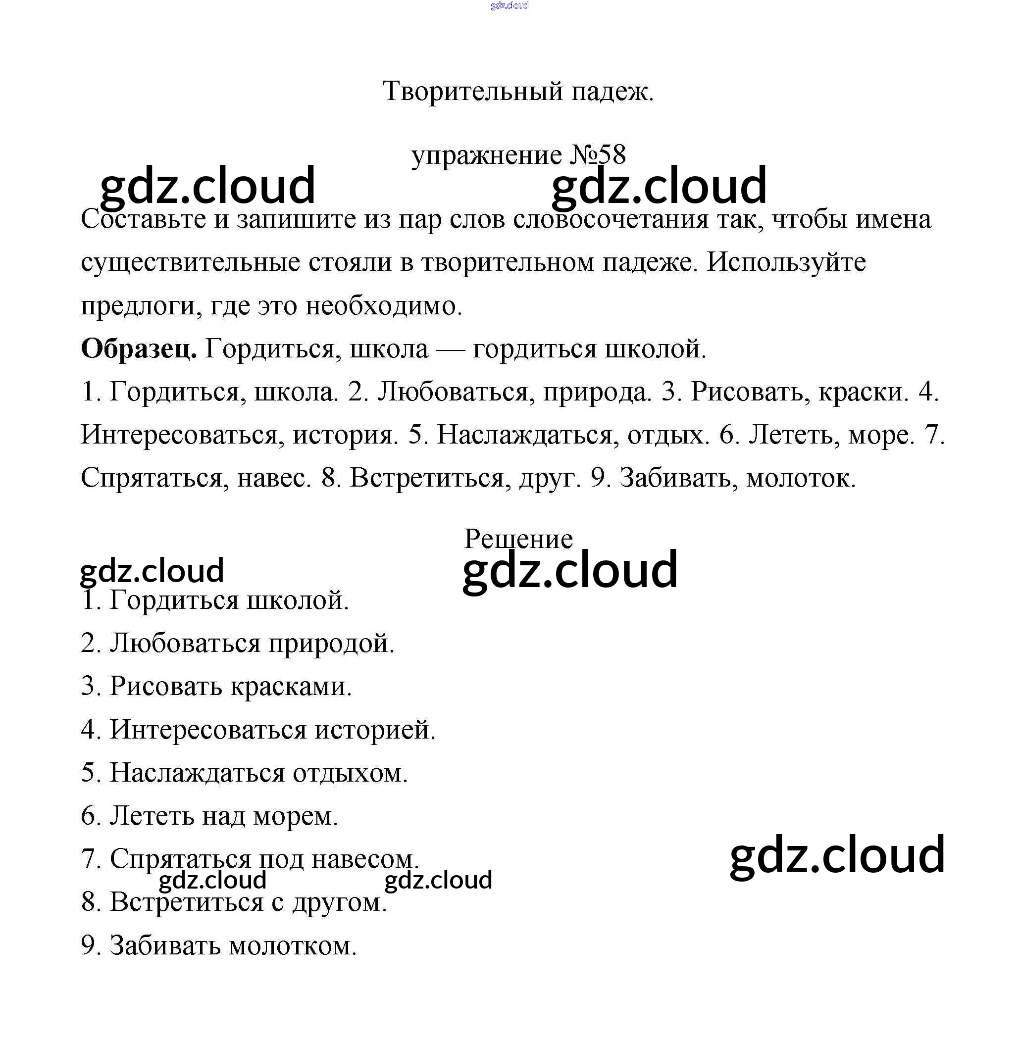 Ответ на задание 58 Учебник Русский язык за 3 (третий) класс Климанова, Бабушкина Перспектива 2019 Часть 1, 2