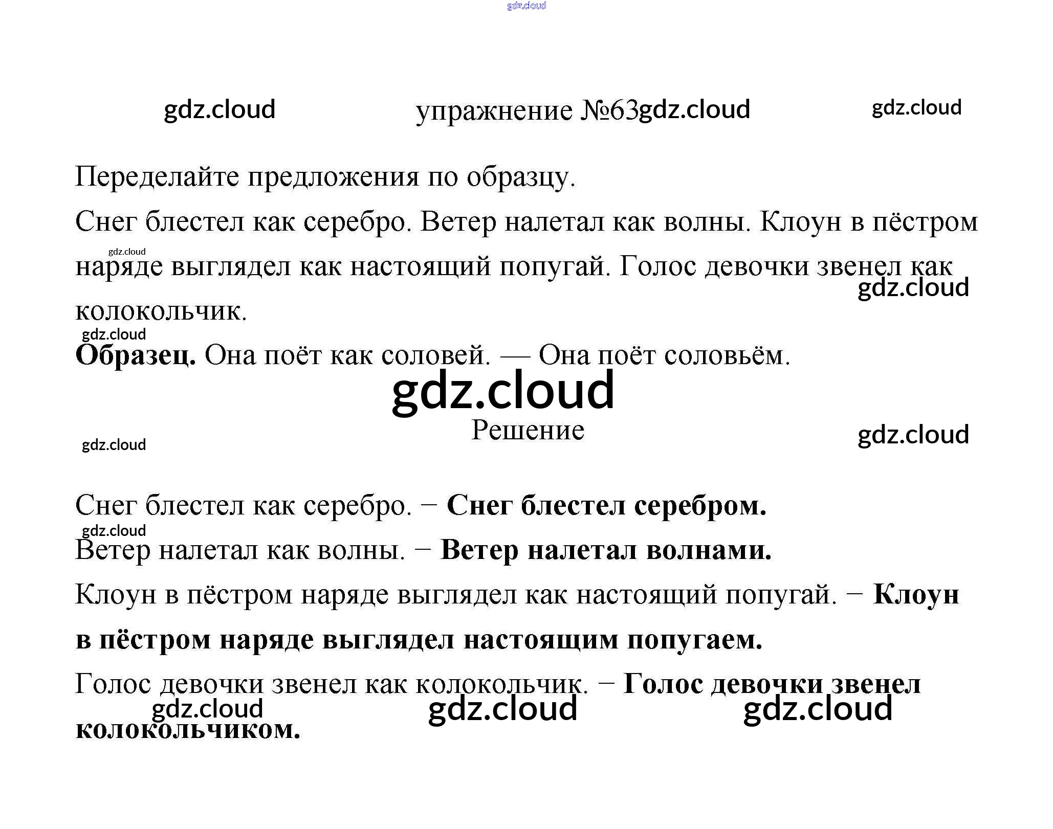 Ответ на задание 63 Учебник Русский язык за 3 (третий) класс Климанова, Бабушкина Перспектива 2019 Часть 1, 2