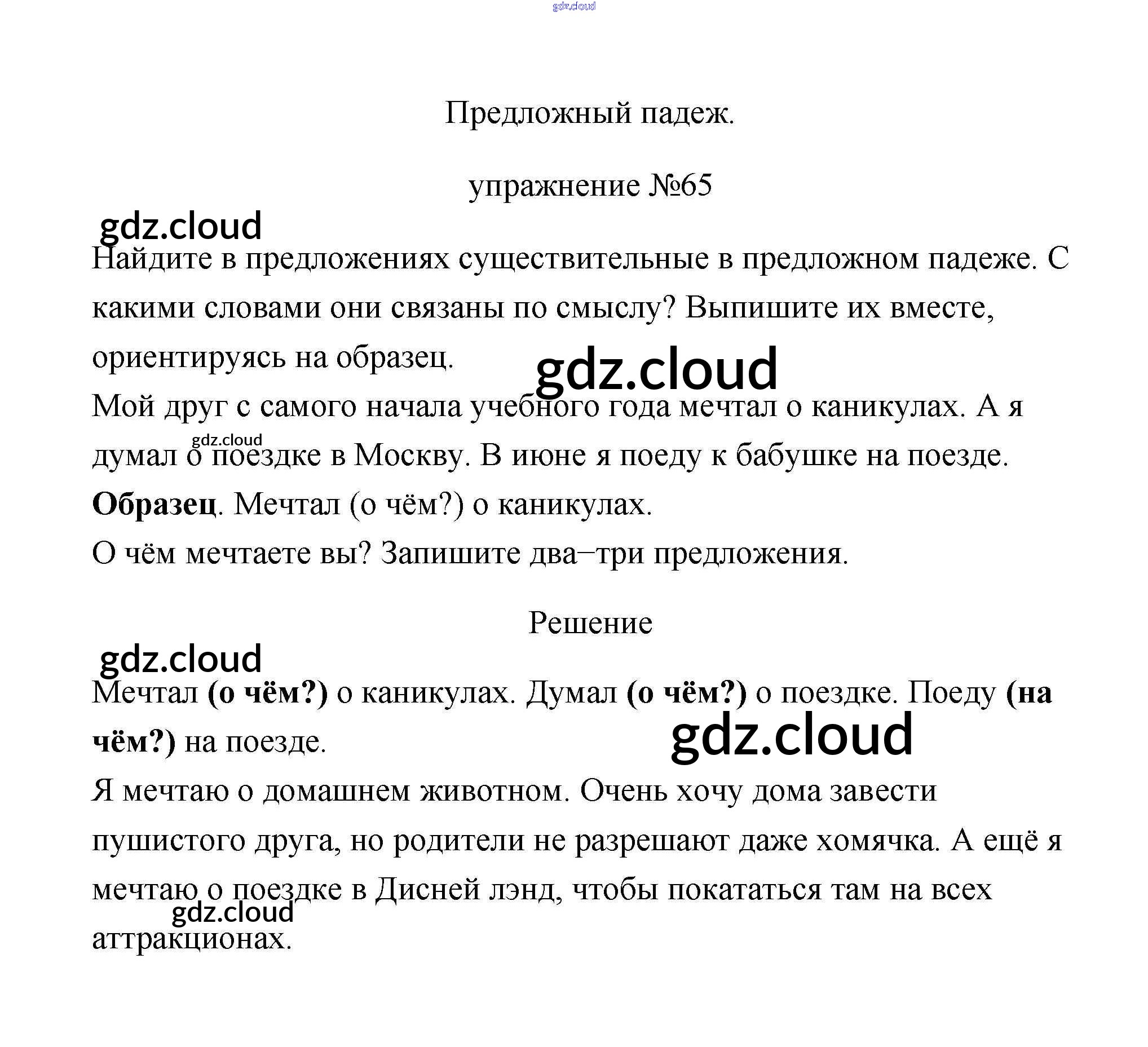 Ответ на задание 65 Учебник Русский язык за 3 (третий) класс Климанова, Бабушкина Перспектива 2019 Часть 1, 2