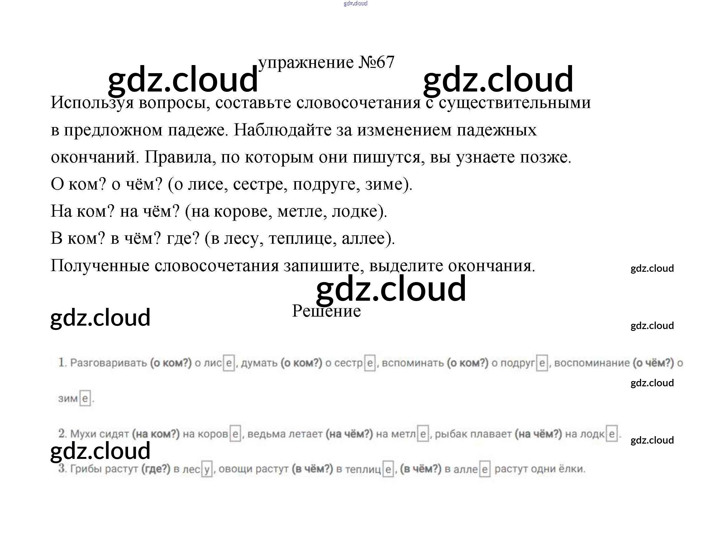 Ответ на задание 67 Учебник Русский язык за 3 (третий) класс Климанова, Бабушкина Перспектива 2019 Часть 1, 2