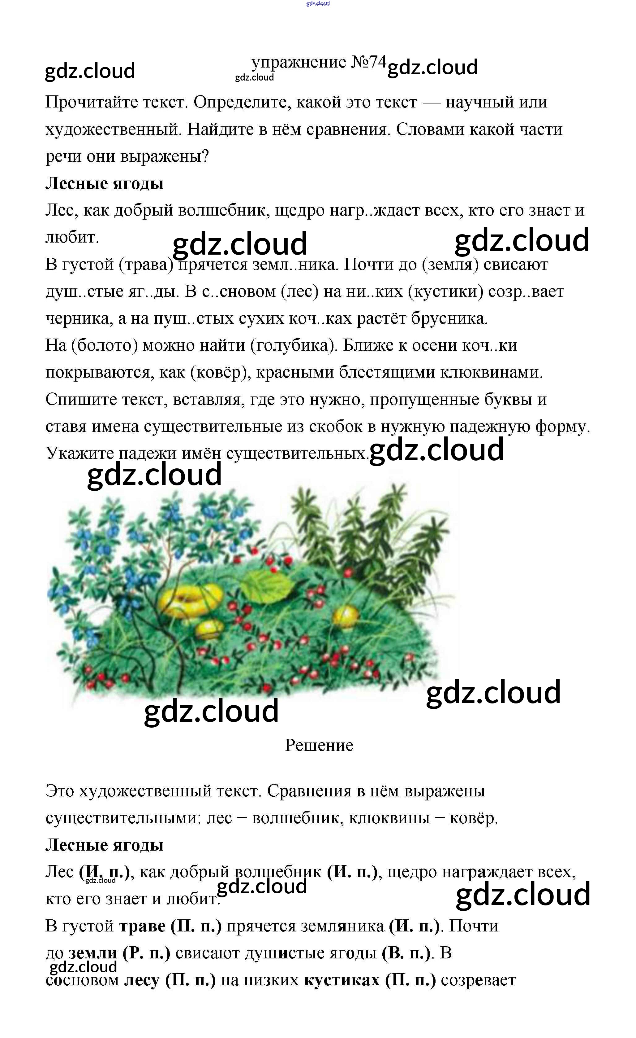 Ответ на задание 74 Учебник Русский язык за 3 (третий) класс Климанова, Бабушкина Перспектива 2019 Часть 1, 2