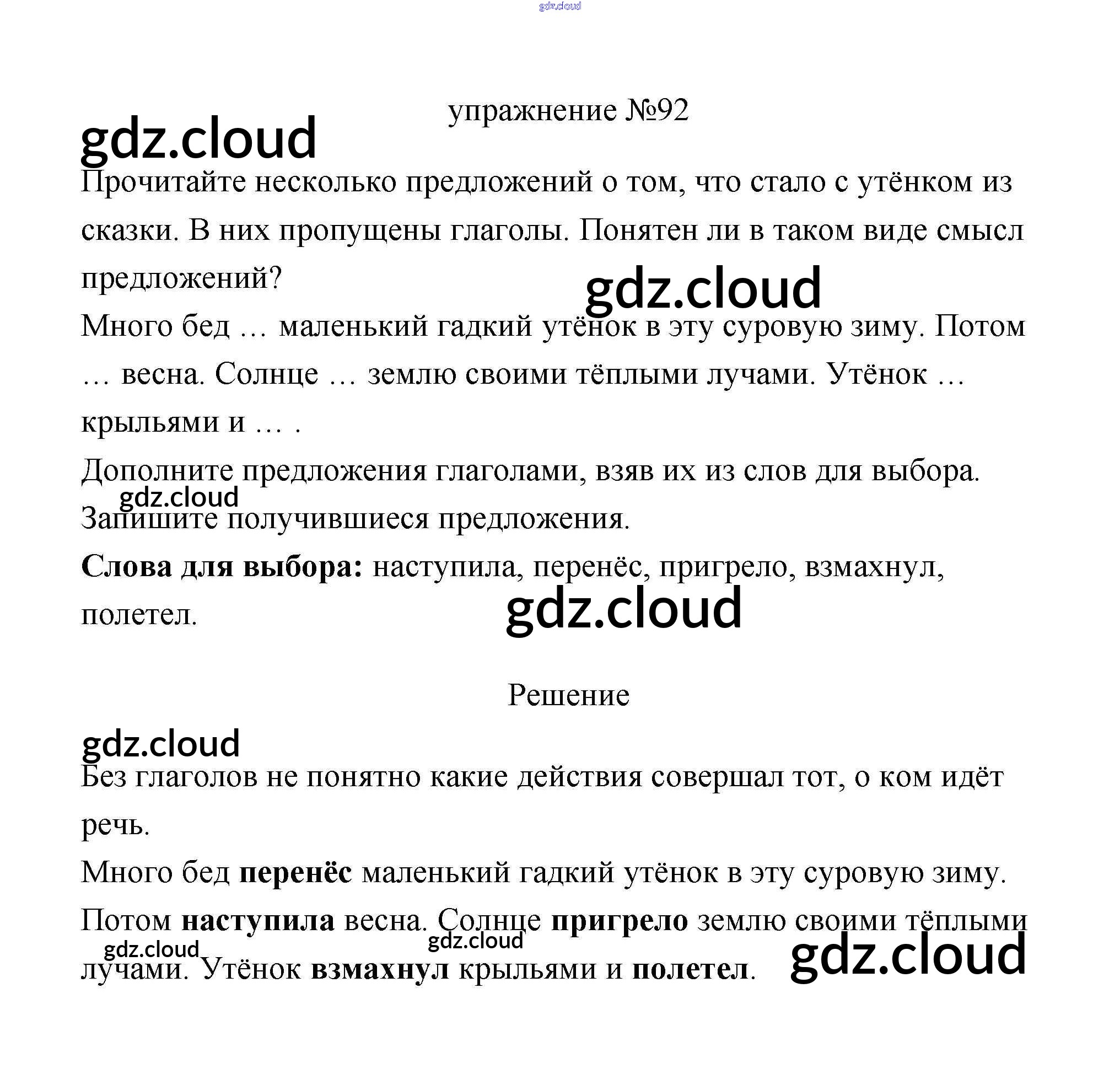 Ответ на задание 92 Учебник Русский язык за 3 (третий) класс Климанова, Бабушкина Перспектива 2019 Часть 1, 2