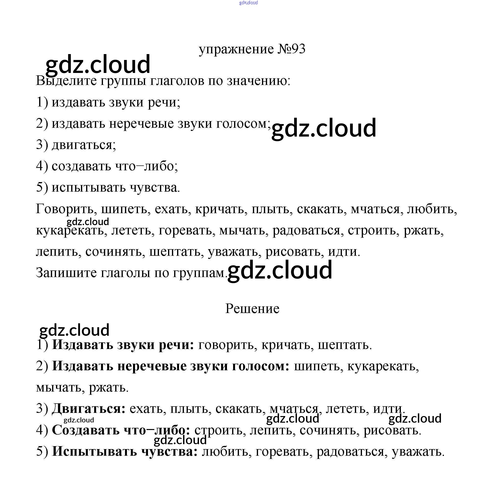 Ответ на задание 93 Учебник Русский язык за 3 (третий) класс Климанова, Бабушкина Перспектива 2019 Часть 1, 2