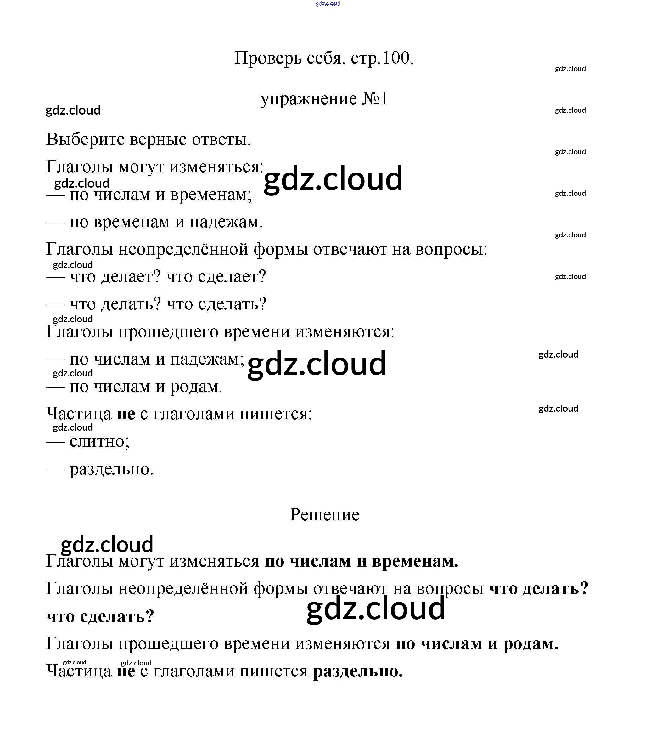 Страница 100 Проверь себя по Русскому языку 3 класс Учебник Климанова Перспектива Часть 1, 2 Просвещение