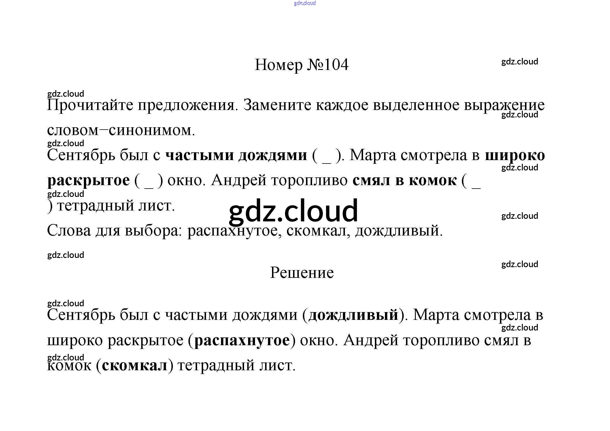 Ответ на задание 104 Рабочая тетрадь Русский язык за 3 (третий) класс Климанова, Бабушкина Перспектива 2018 Часть 1, 2