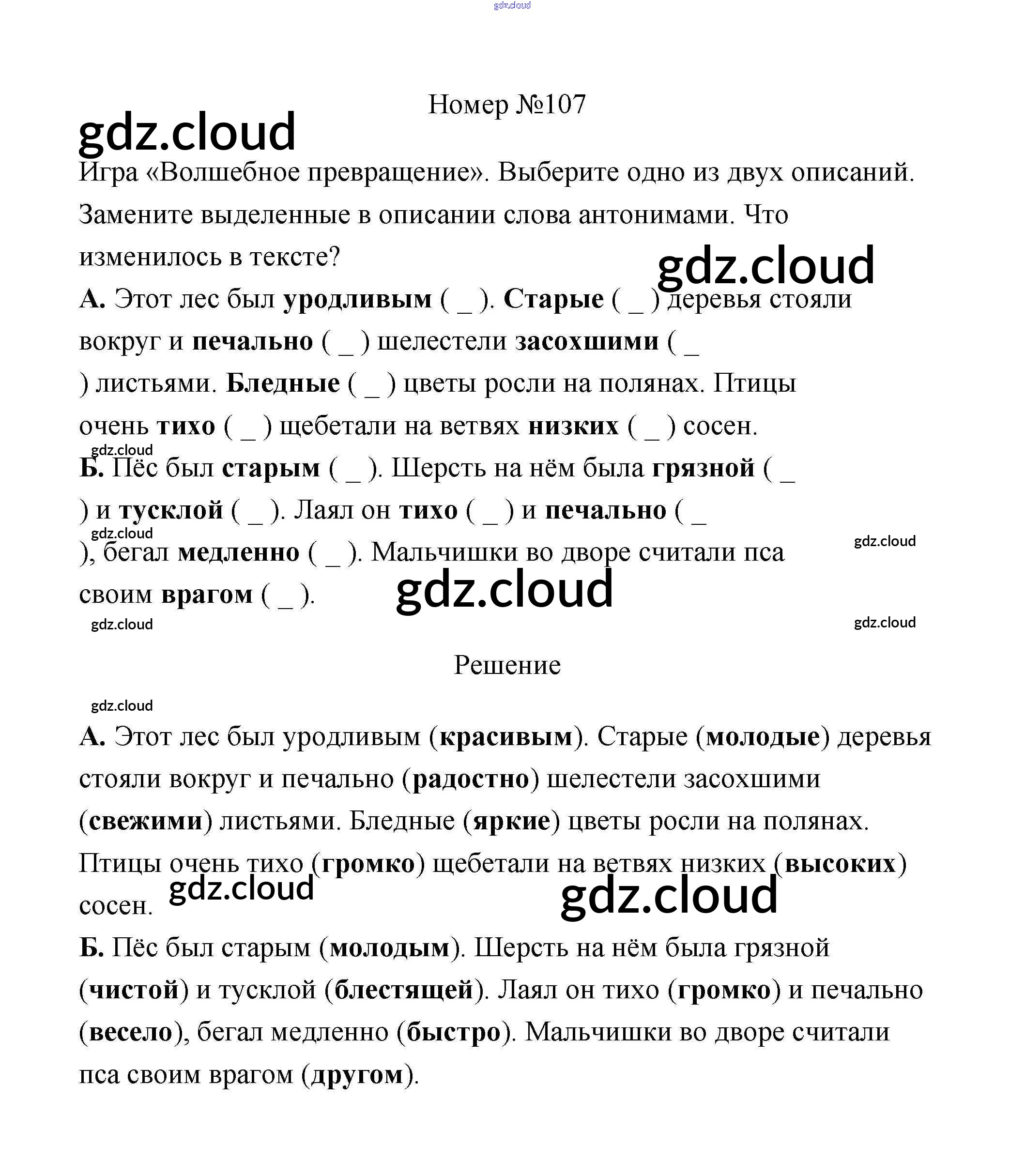 Ответ на задание 107 Рабочая тетрадь Русский язык за 3 (третий) класс Климанова, Бабушкина Перспектива 2018 Часть 1, 2