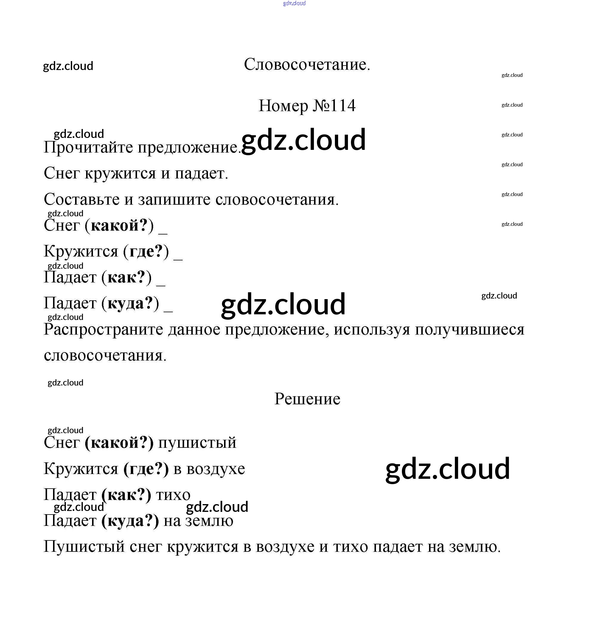 Ответ на задание 114 Рабочая тетрадь Русский язык за 3 (третий) класс Климанова, Бабушкина Перспектива 2018 Часть 1, 2