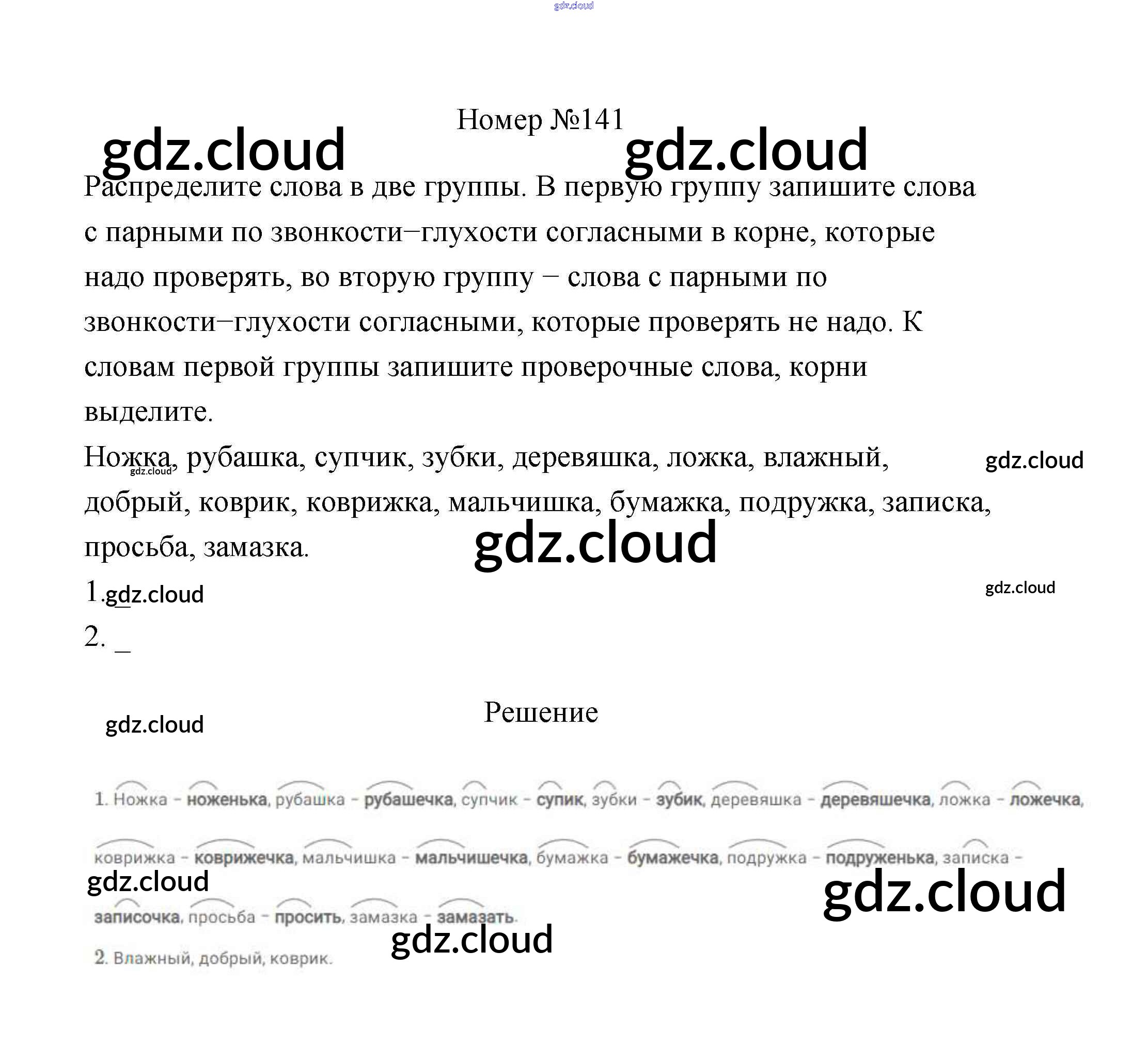 Ответ на задание 141 Рабочая тетрадь Русский язык за 3 (третий) класс Климанова, Бабушкина Перспектива 2018 Часть 1, 2