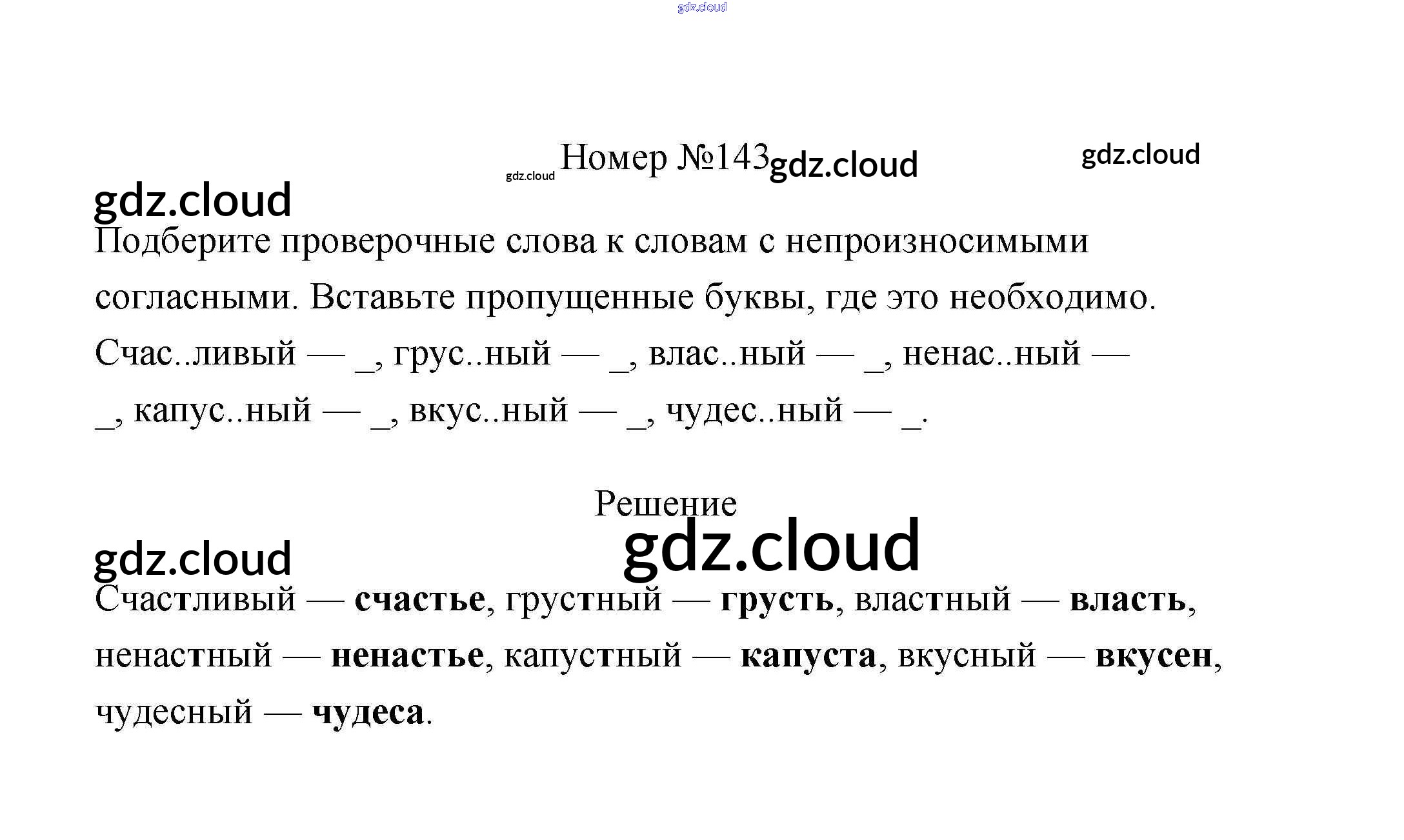 Ответ на задание 143 Рабочая тетрадь Русский язык за 3 (третий) класс Климанова, Бабушкина Перспектива 2018 Часть 1, 2