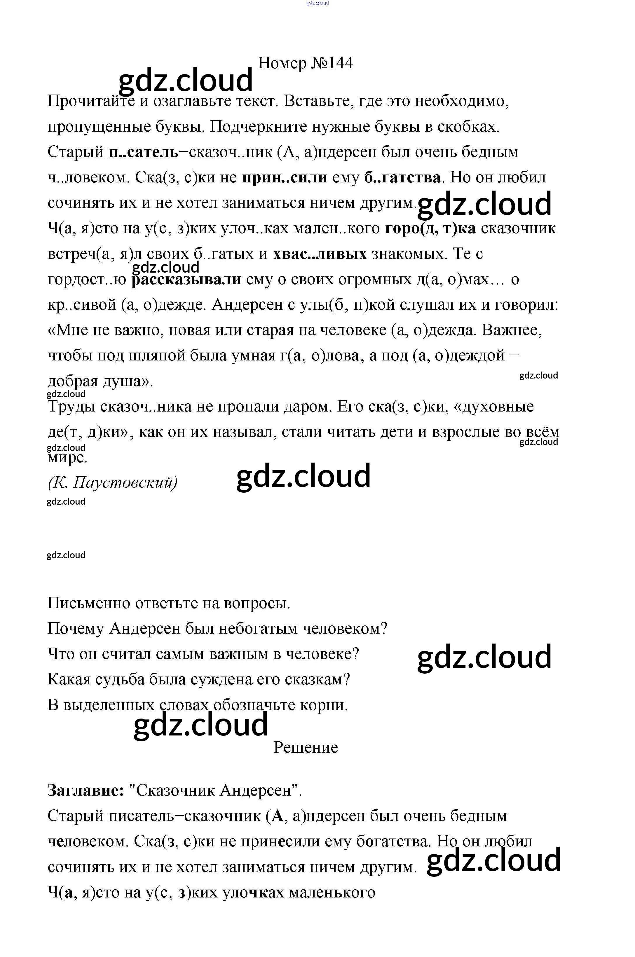 Ответ на задание 144 Рабочая тетрадь Русский язык за 3 (третий) класс Климанова, Бабушкина Перспектива 2018 Часть 1, 2