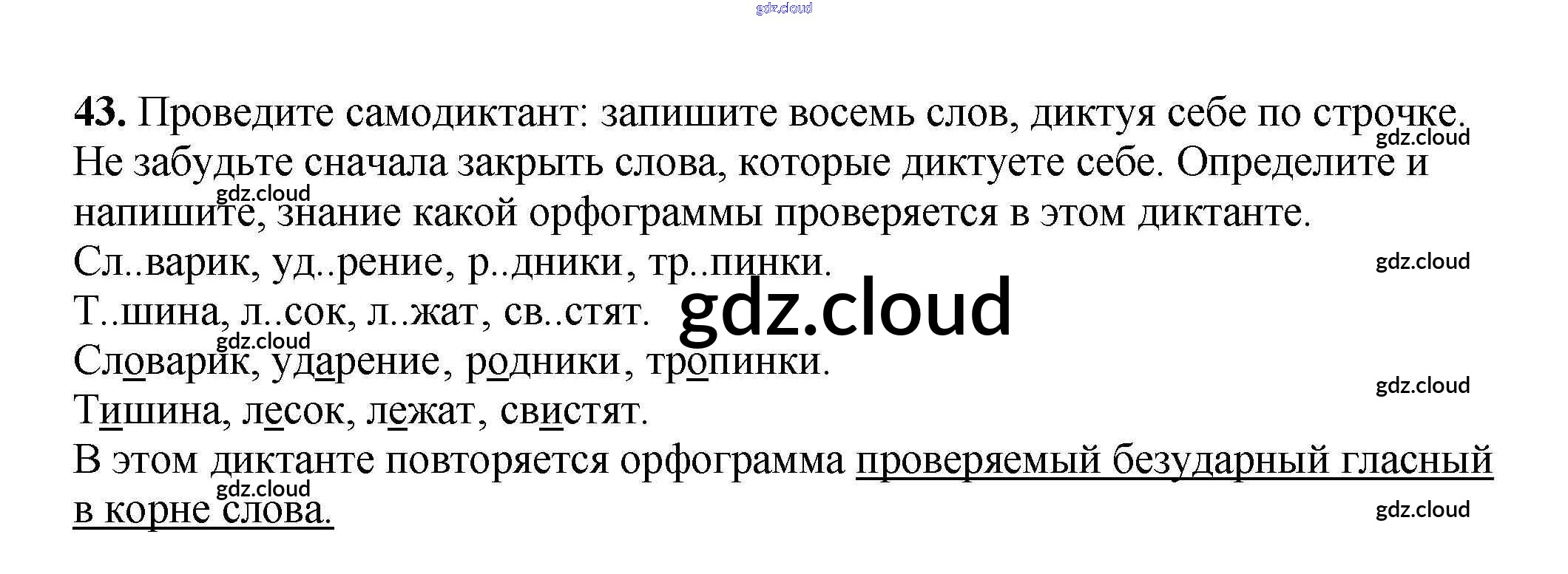 Ответ на задание 43 Рабочая тетрадь Русский язык за 3 (третий) класс Климанова, Бабушкина Перспектива 2018 Часть 1, 2