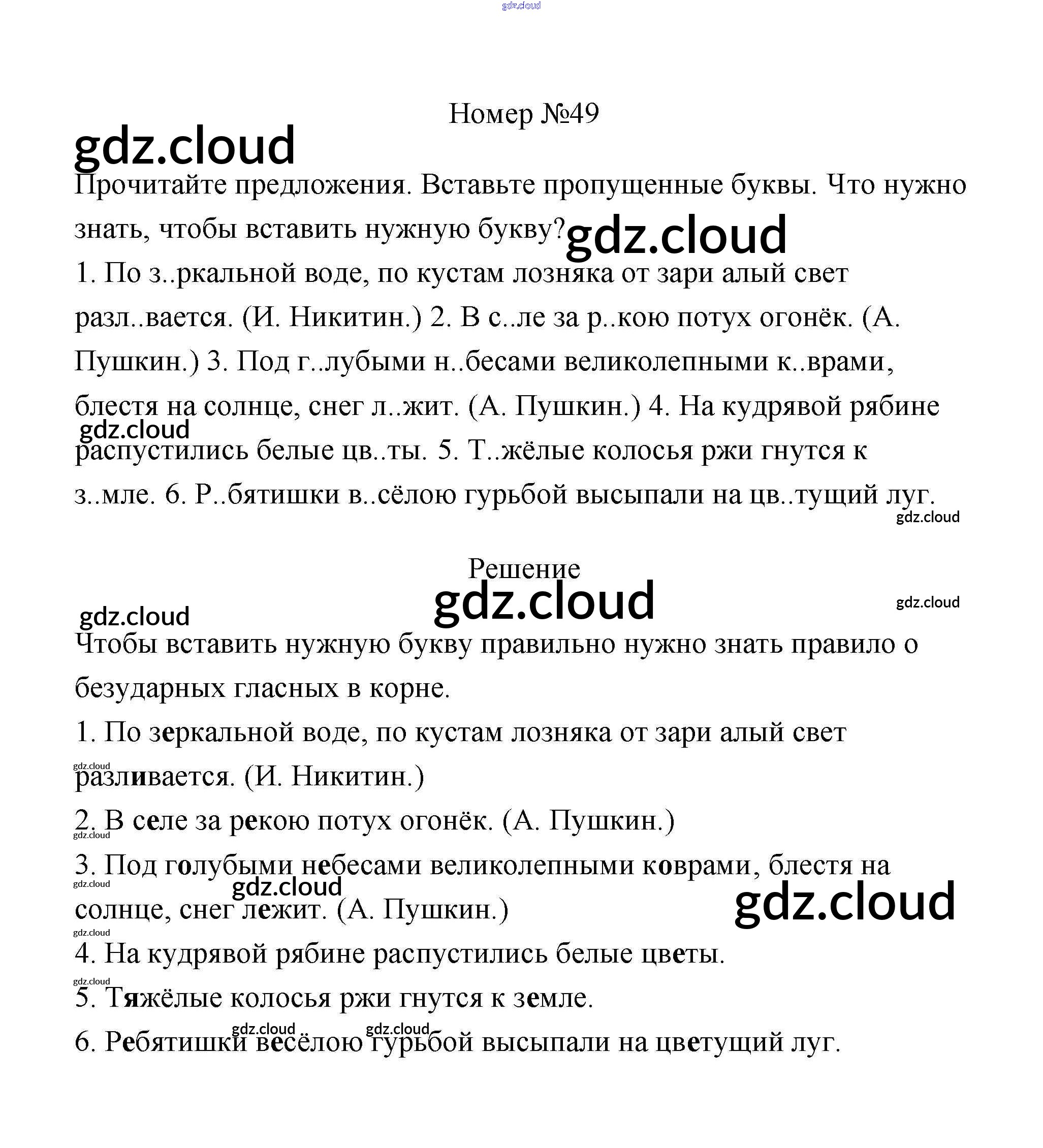 Ответ на задание 49 Рабочая тетрадь Русский язык за 3 (третий) класс Климанова, Бабушкина Перспектива 2018 Часть 1, 2