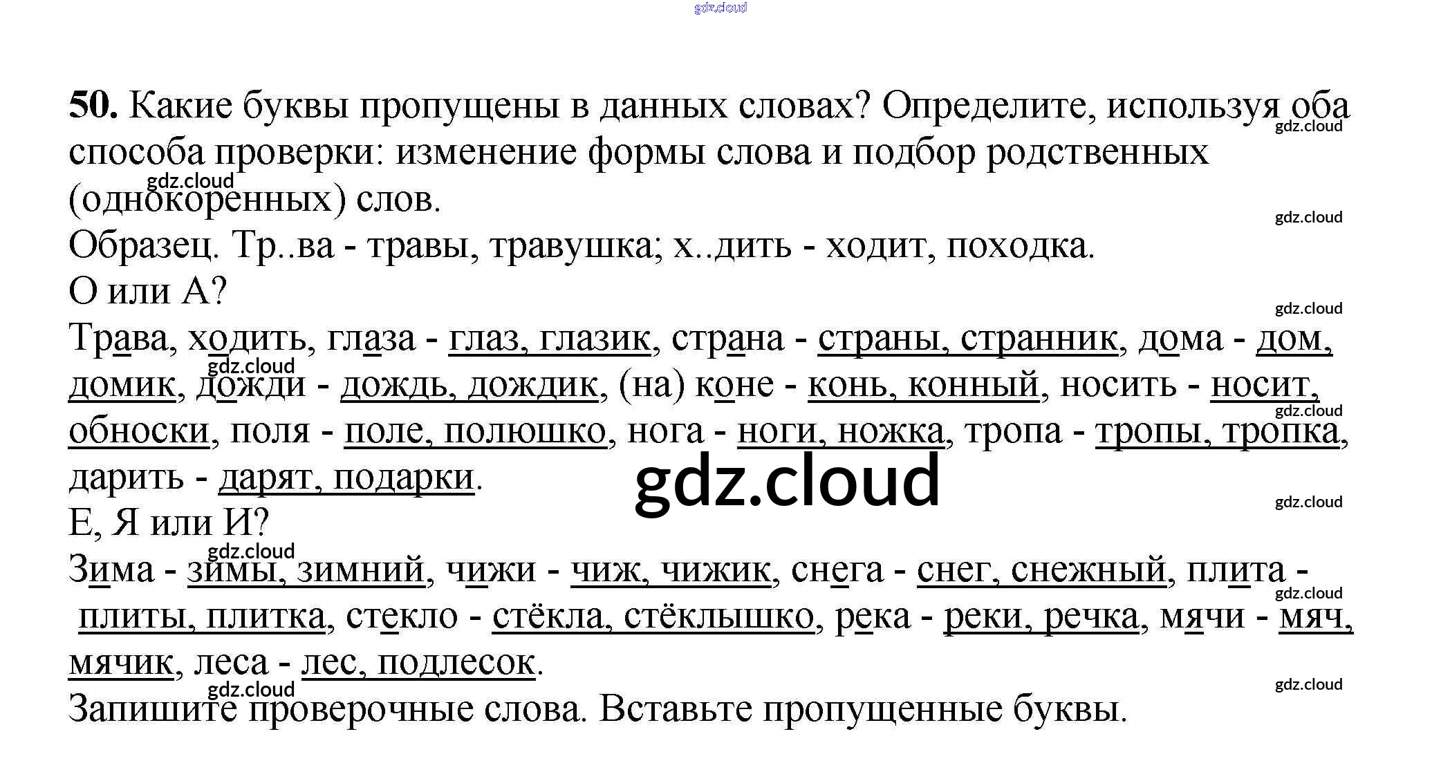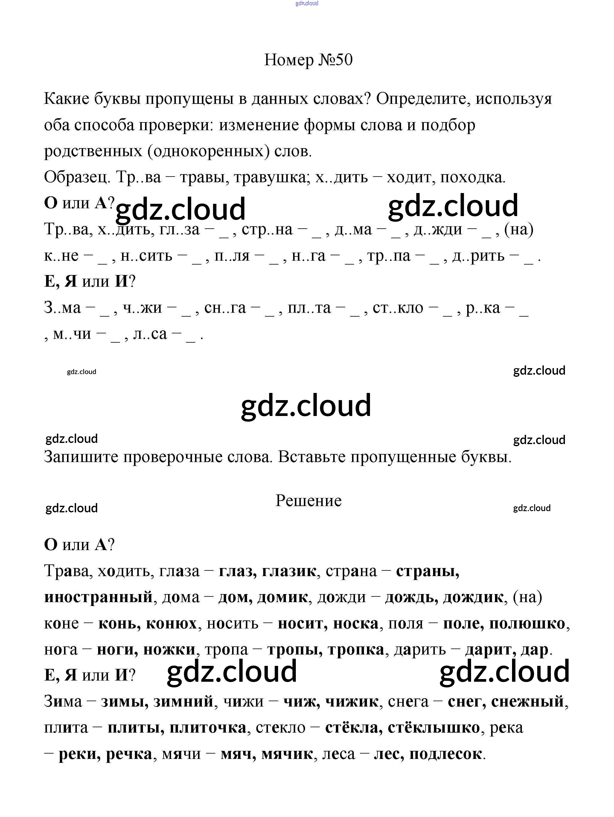 Ответ на задание 50 Рабочая тетрадь Русский язык за 3 (третий) класс Климанова, Бабушкина Перспектива 2018 Часть 1, 2