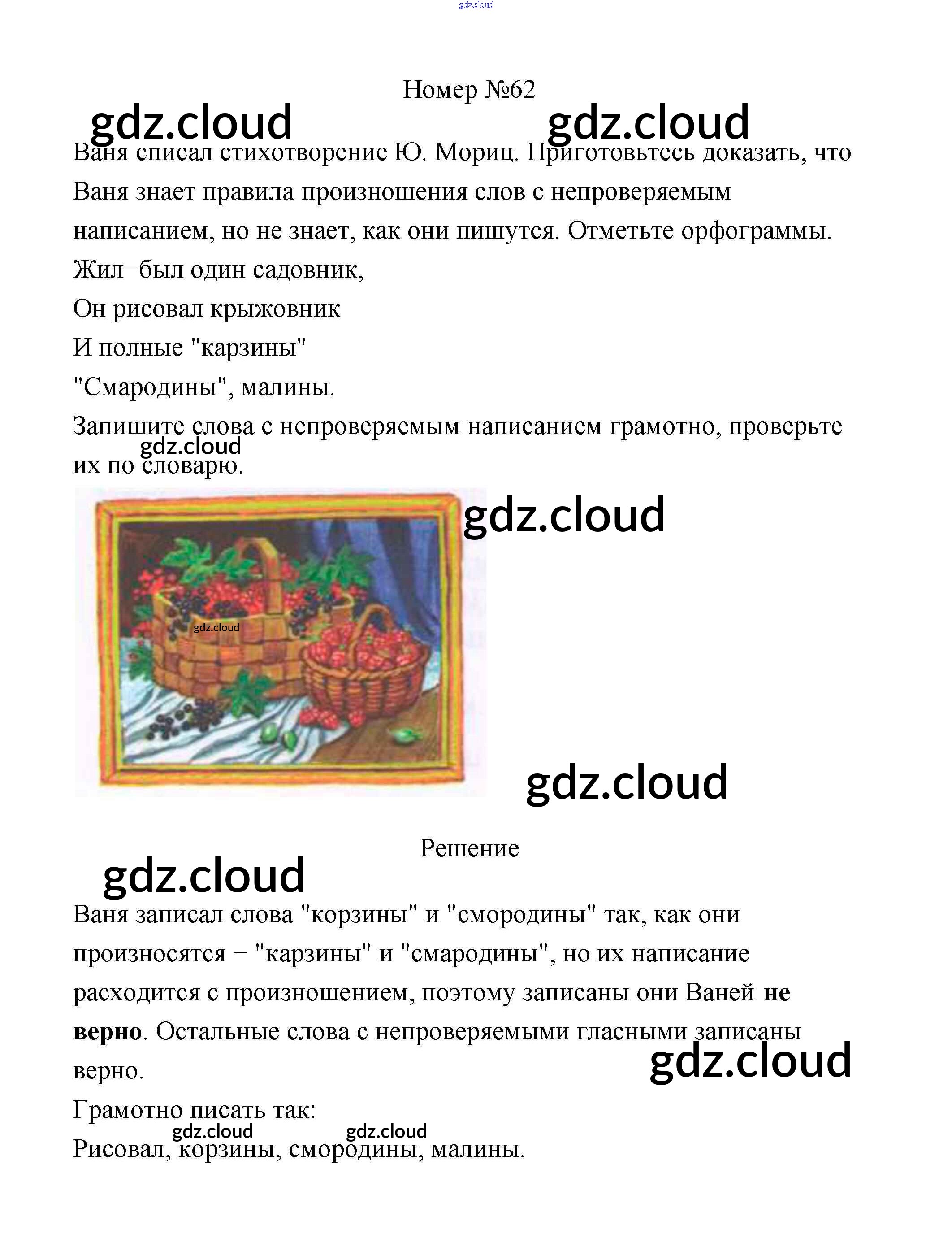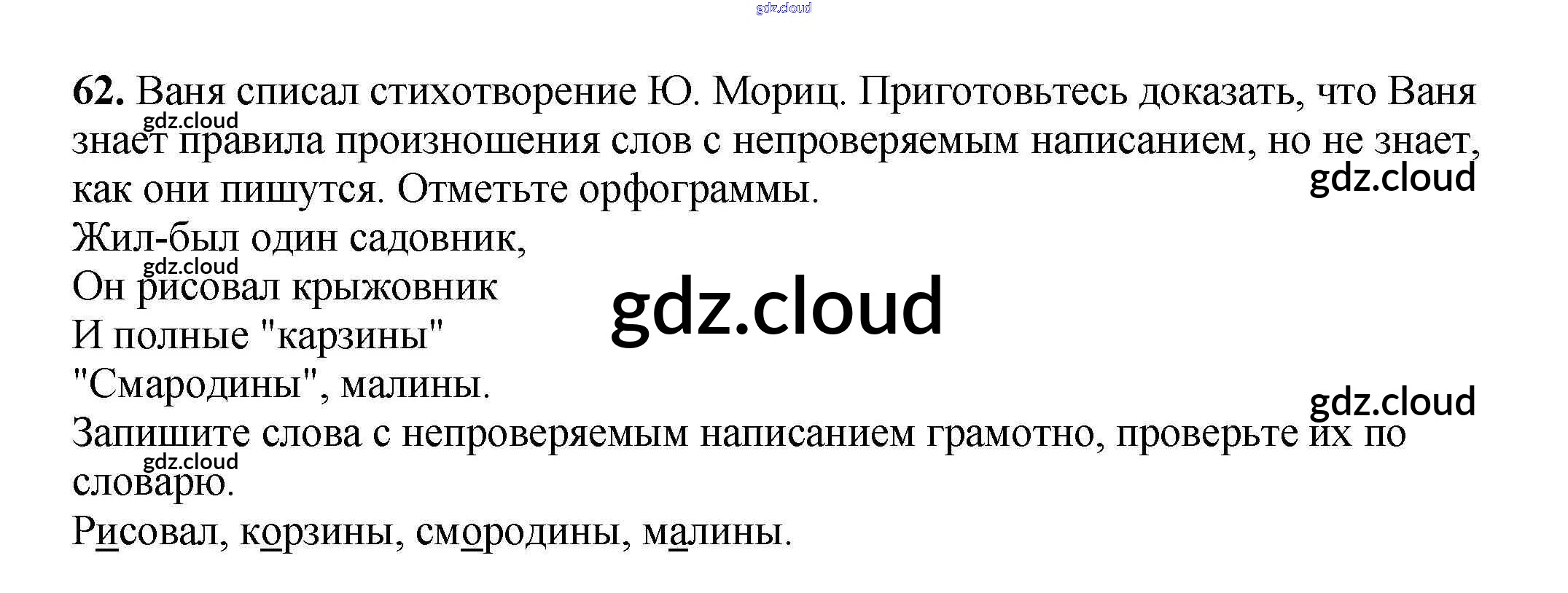 Ответ на задание 62 Рабочая тетрадь Русский язык за 3 (третий) класс Климанова, Бабушкина Перспектива 2018 Часть 1, 2