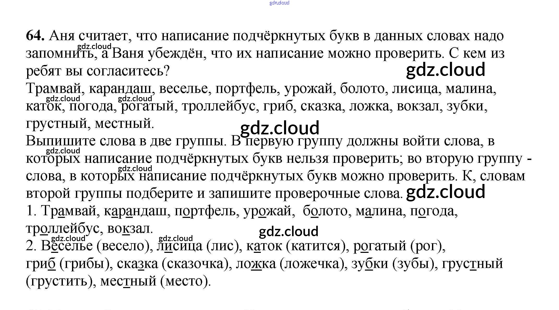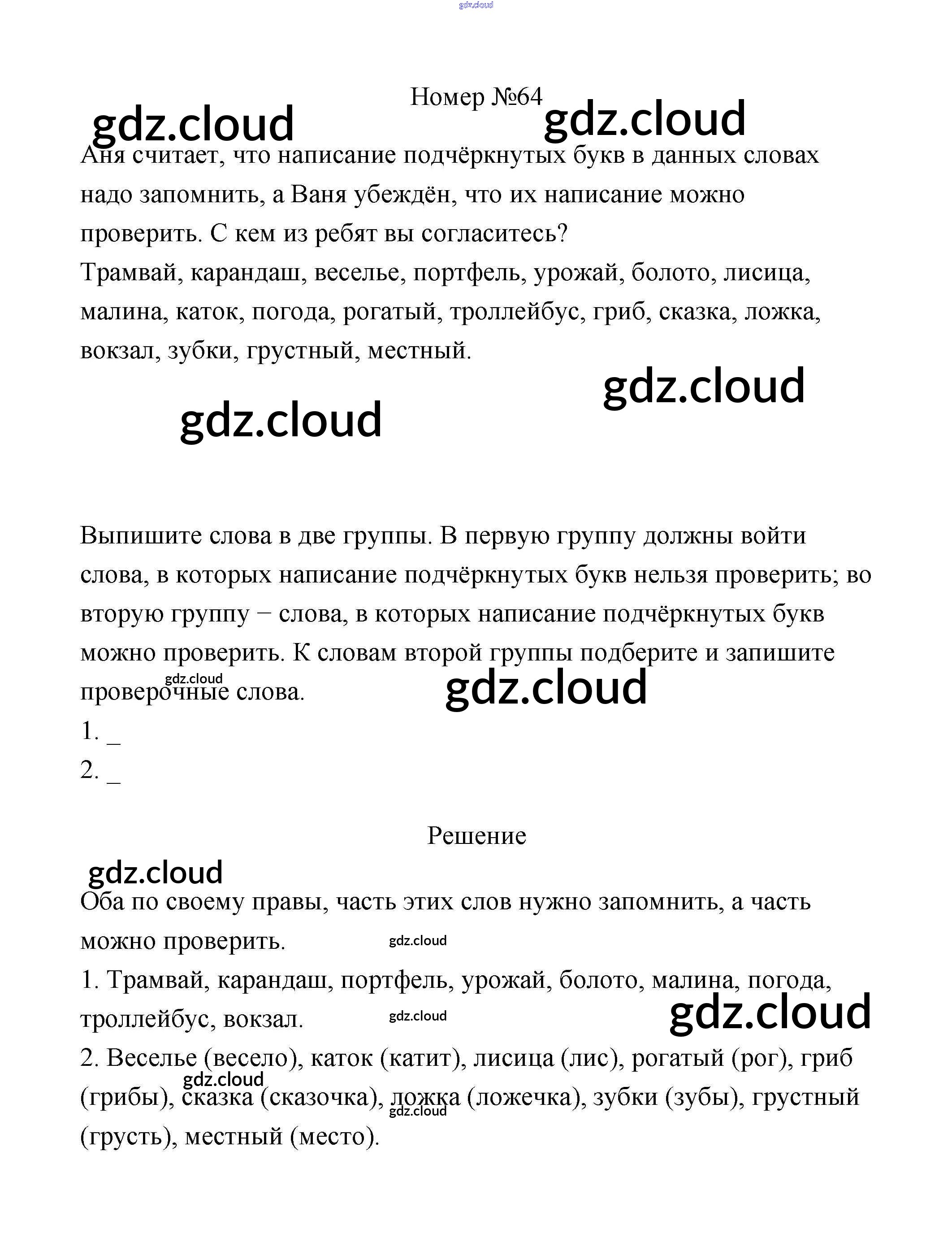 Ответ на задание 64 Рабочая тетрадь Русский язык за 3 (третий) класс Климанова, Бабушкина Перспектива 2018 Часть 1, 2