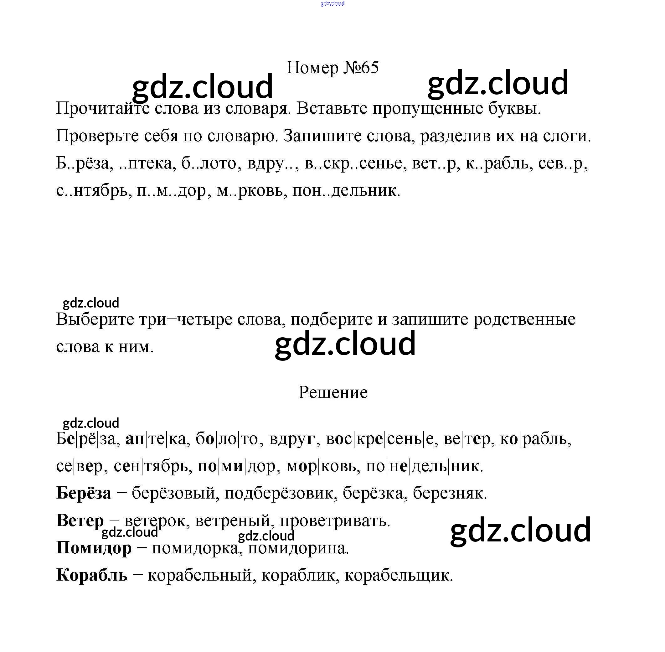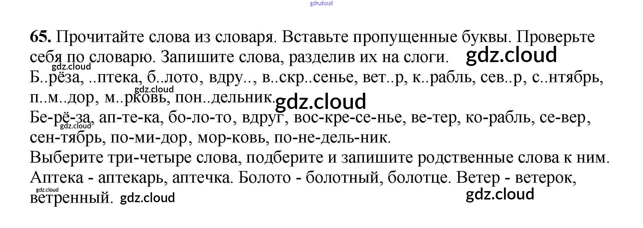 Ответ на задание 65 Рабочая тетрадь Русский язык за 3 (третий) класс Климанова, Бабушкина Перспектива 2018 Часть 1, 2