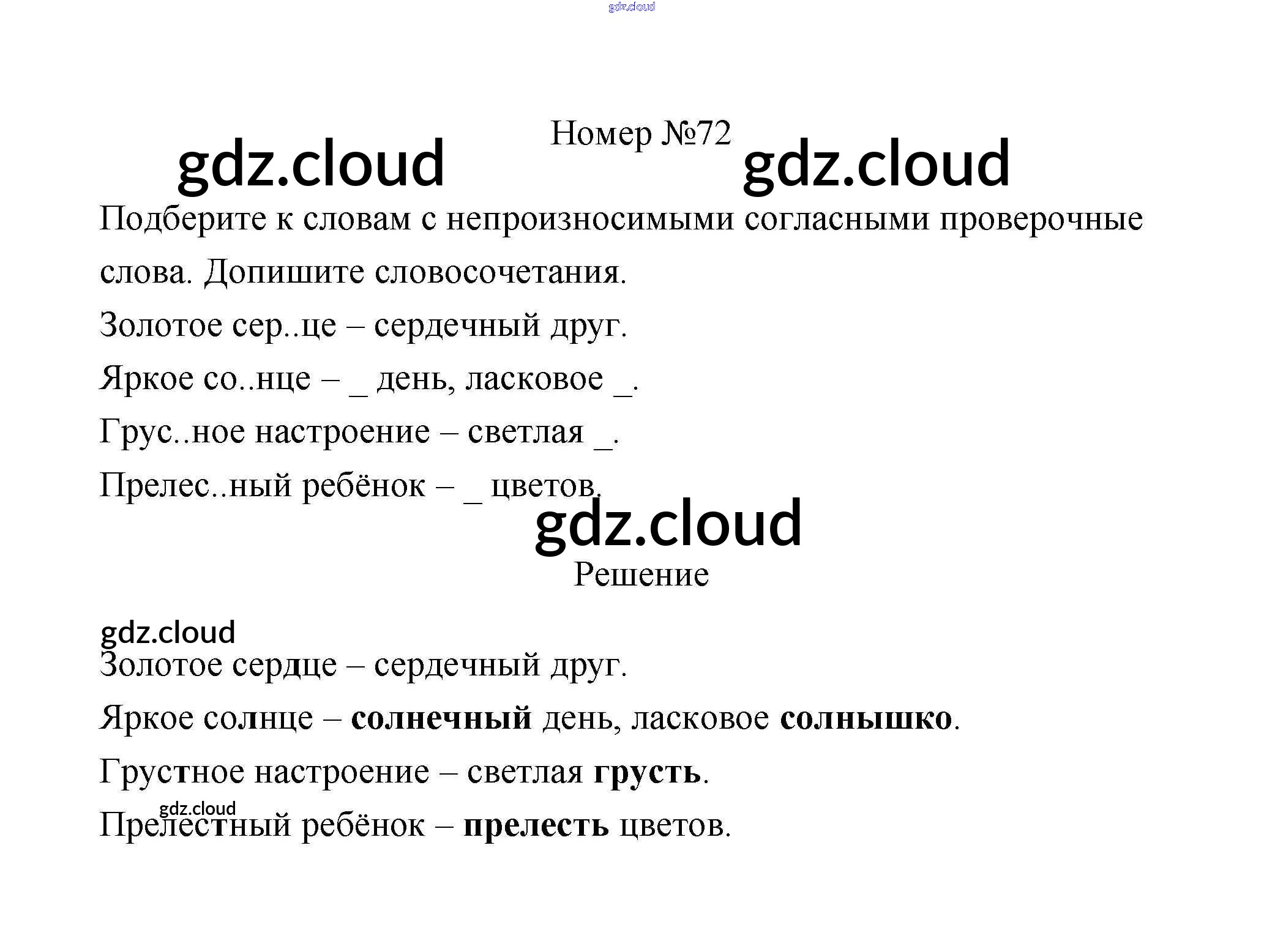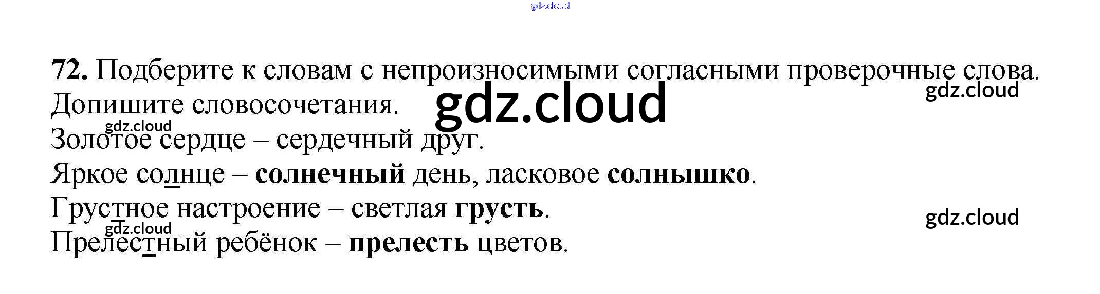 Ответ на задание 72 Рабочая тетрадь Русский язык за 3 (третий) класс Климанова, Бабушкина Перспектива 2018 Часть 1, 2