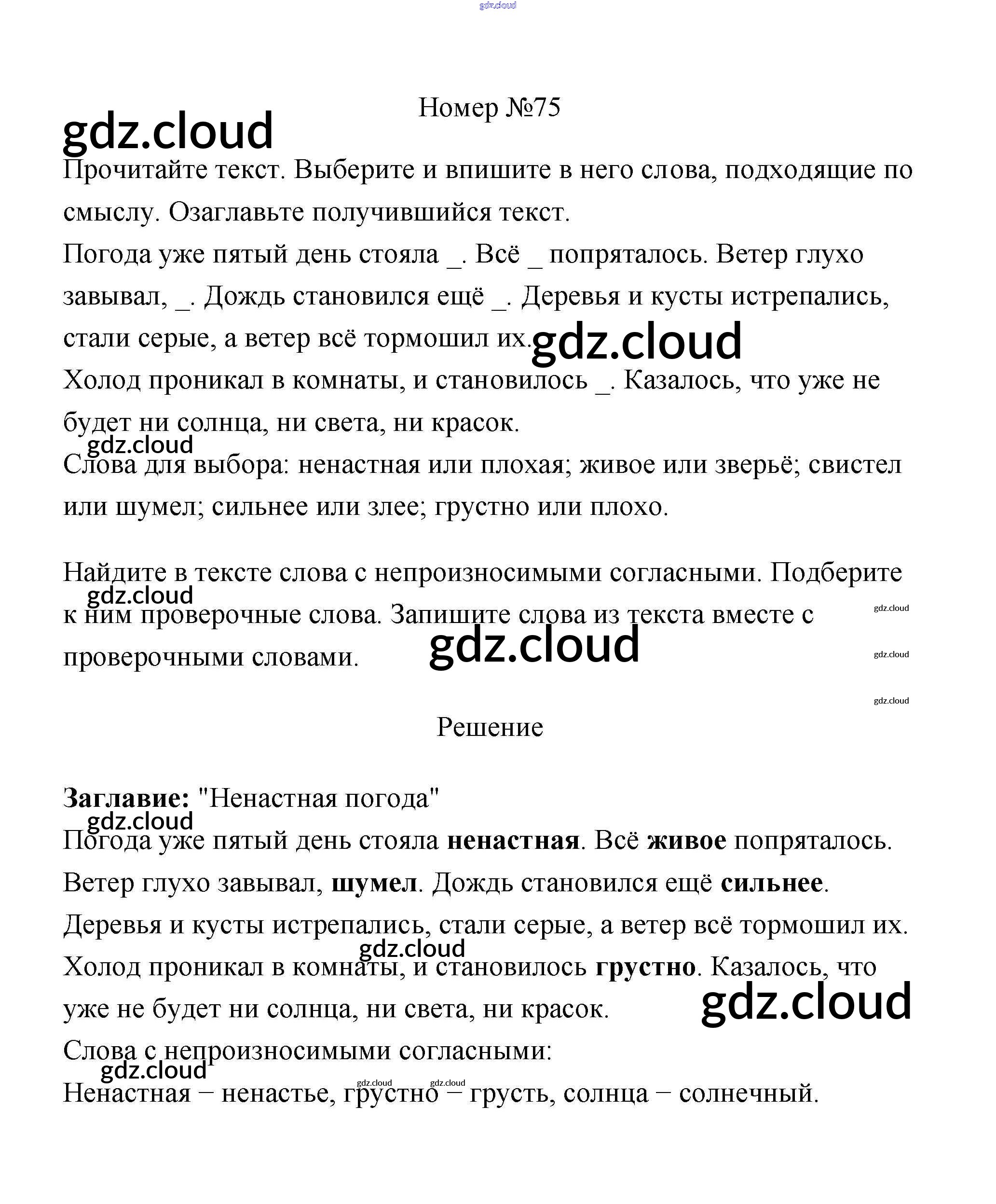 Ответ на задание 75 Рабочая тетрадь Русский язык за 3 (третий) класс Климанова, Бабушкина Перспектива 2018 Часть 1, 2