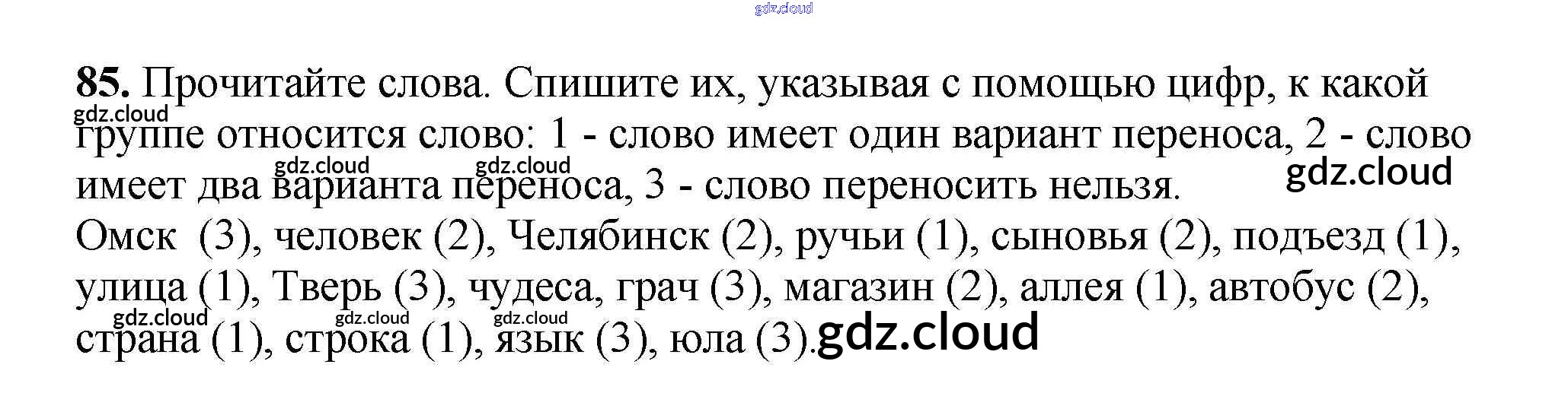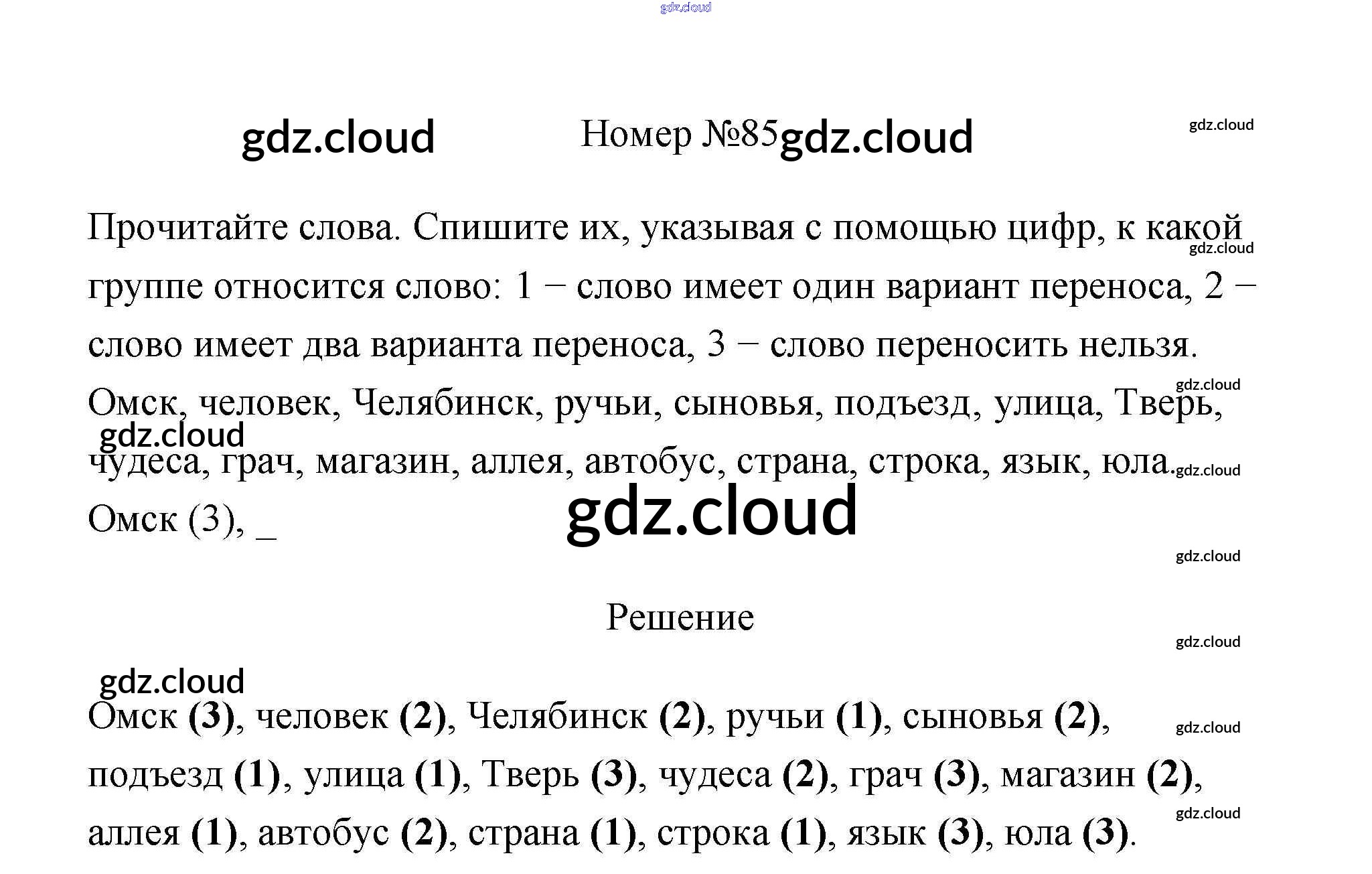 Ответ на задание 85 Рабочая тетрадь Русский язык за 3 (третий) класс Климанова, Бабушкина Перспектива 2018 Часть 1, 2
