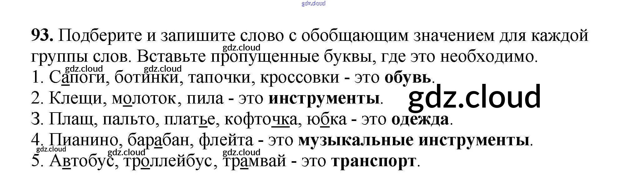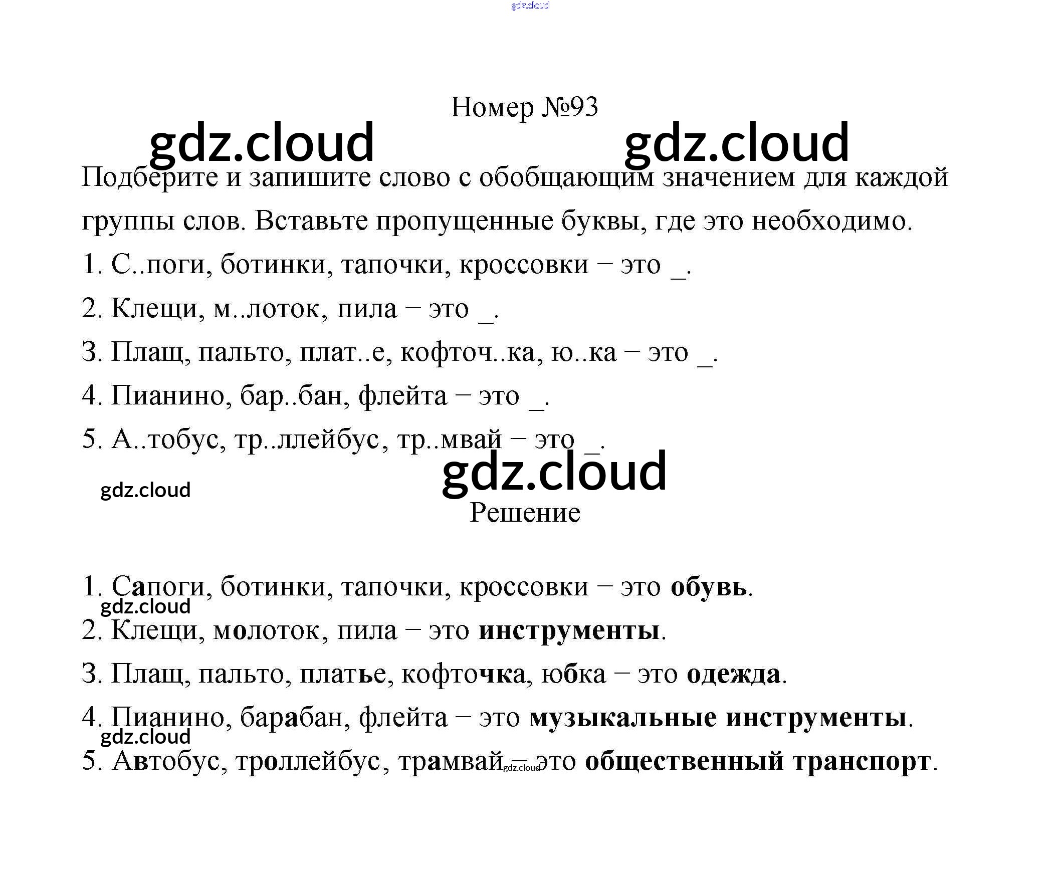 Ответ на задание 93 Рабочая тетрадь Русский язык за 3 (третий) класс Климанова, Бабушкина Перспектива 2018 Часть 1, 2
