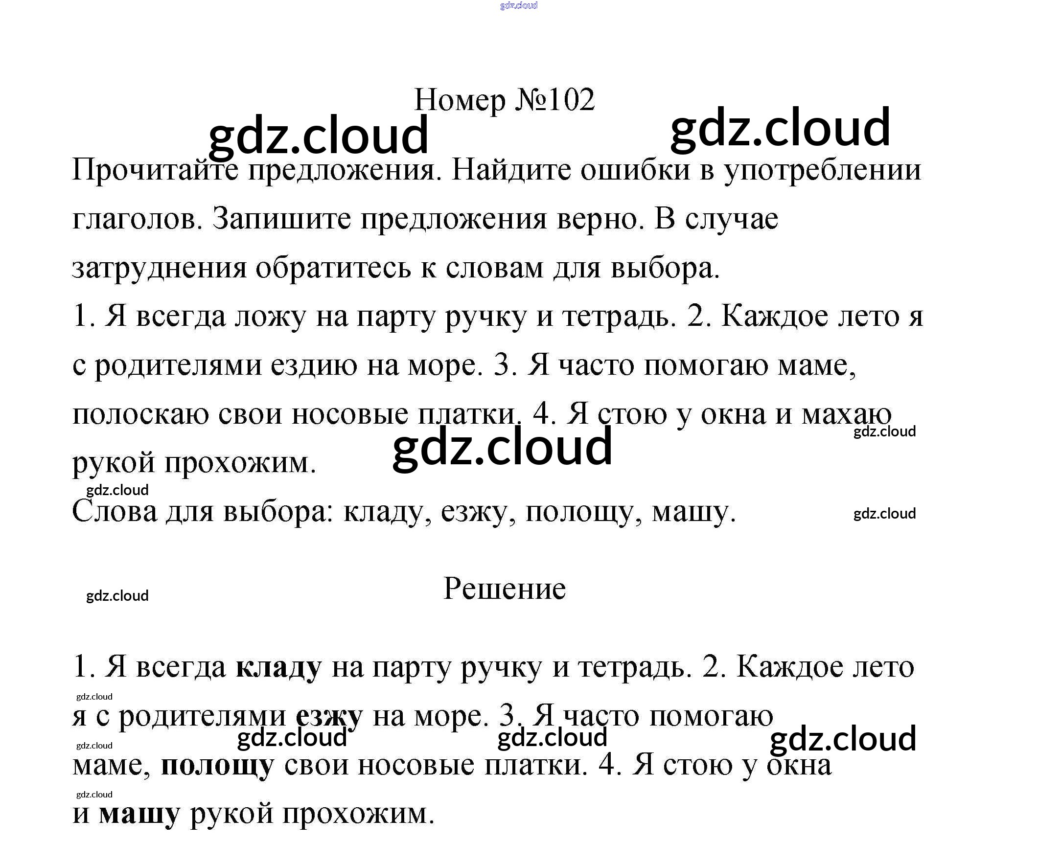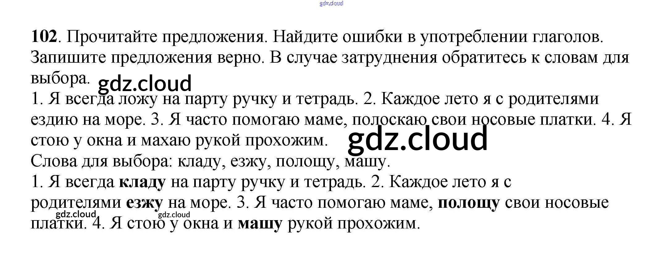 Ответ на задание 102 Рабочая тетрадь Русский язык за 3 (третий) класс Климанова, Бабушкина Перспектива 2018 Часть 1, 2