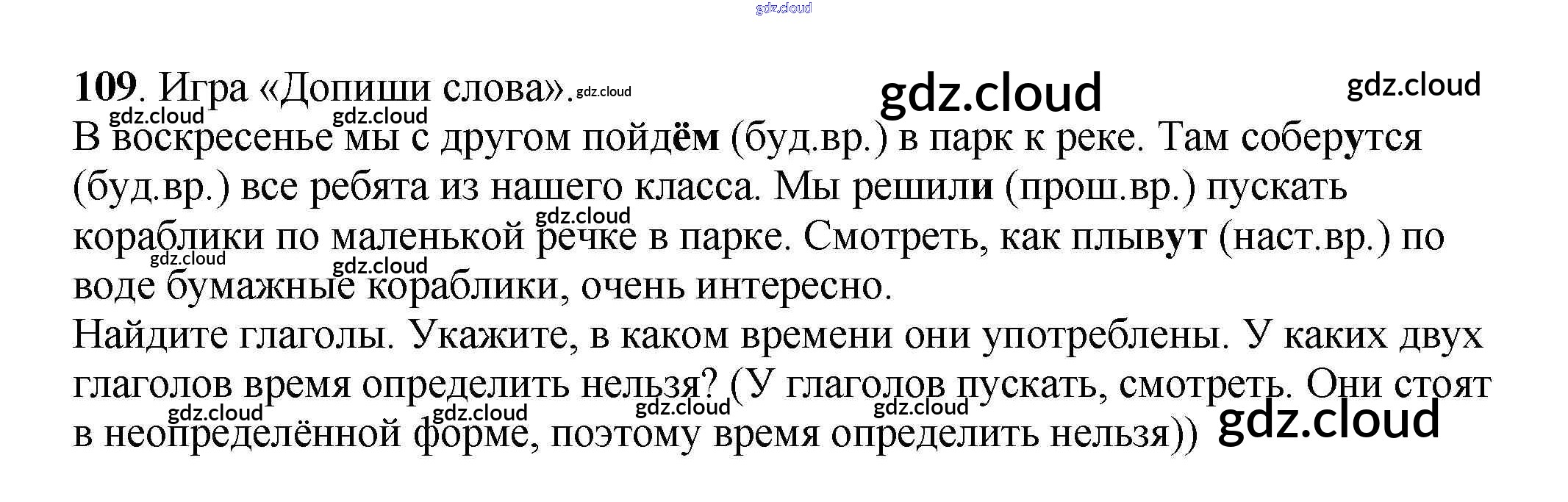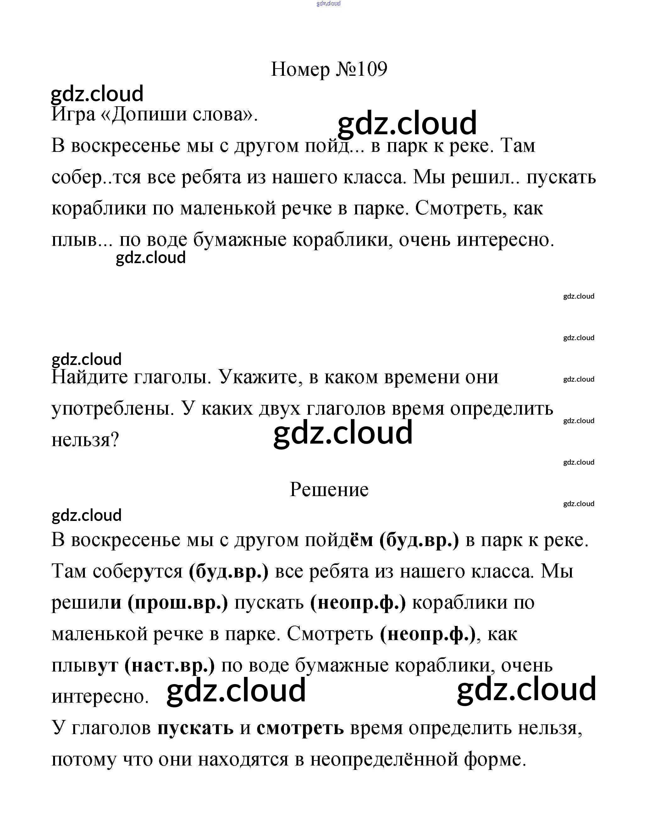 Ответ на задание 109 Рабочая тетрадь Русский язык за 3 (третий) класс Климанова, Бабушкина Перспектива 2018 Часть 1, 2