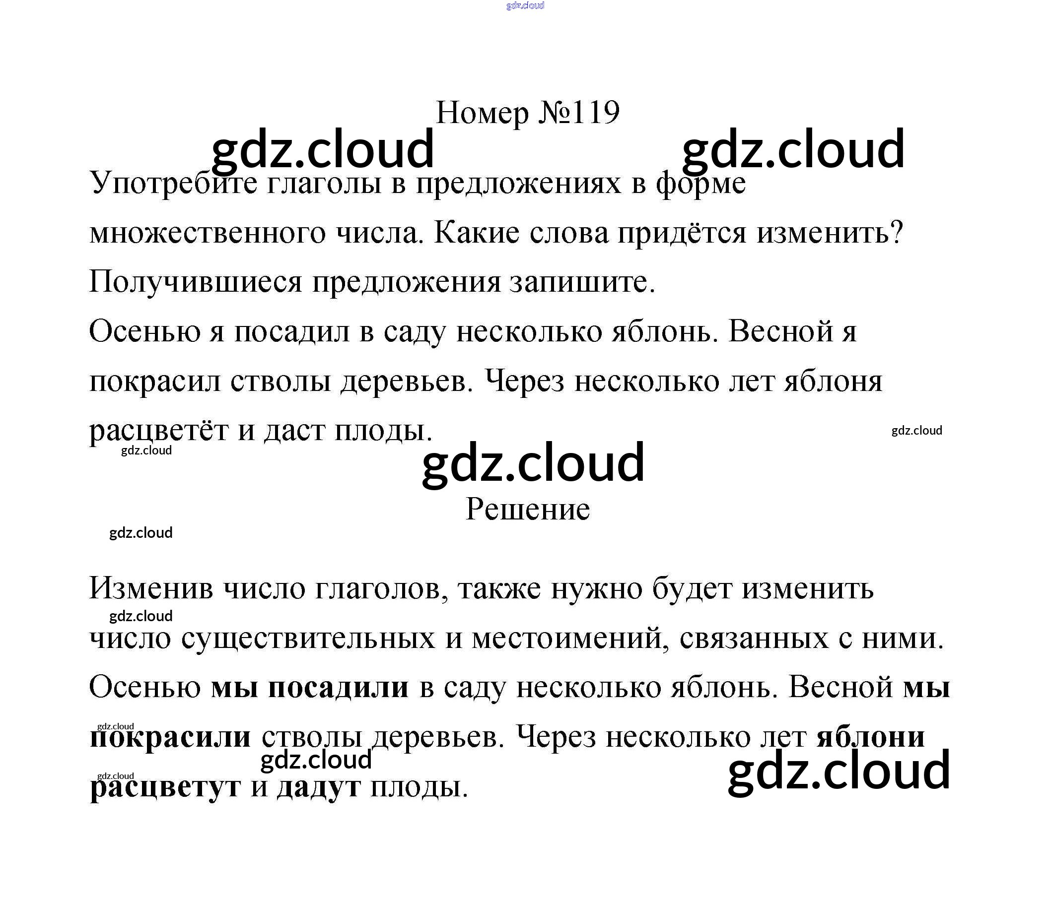 Ответ на задание 119 Рабочая тетрадь Русский язык за 3 (третий) класс Климанова, Бабушкина Перспектива 2018 Часть 1, 2