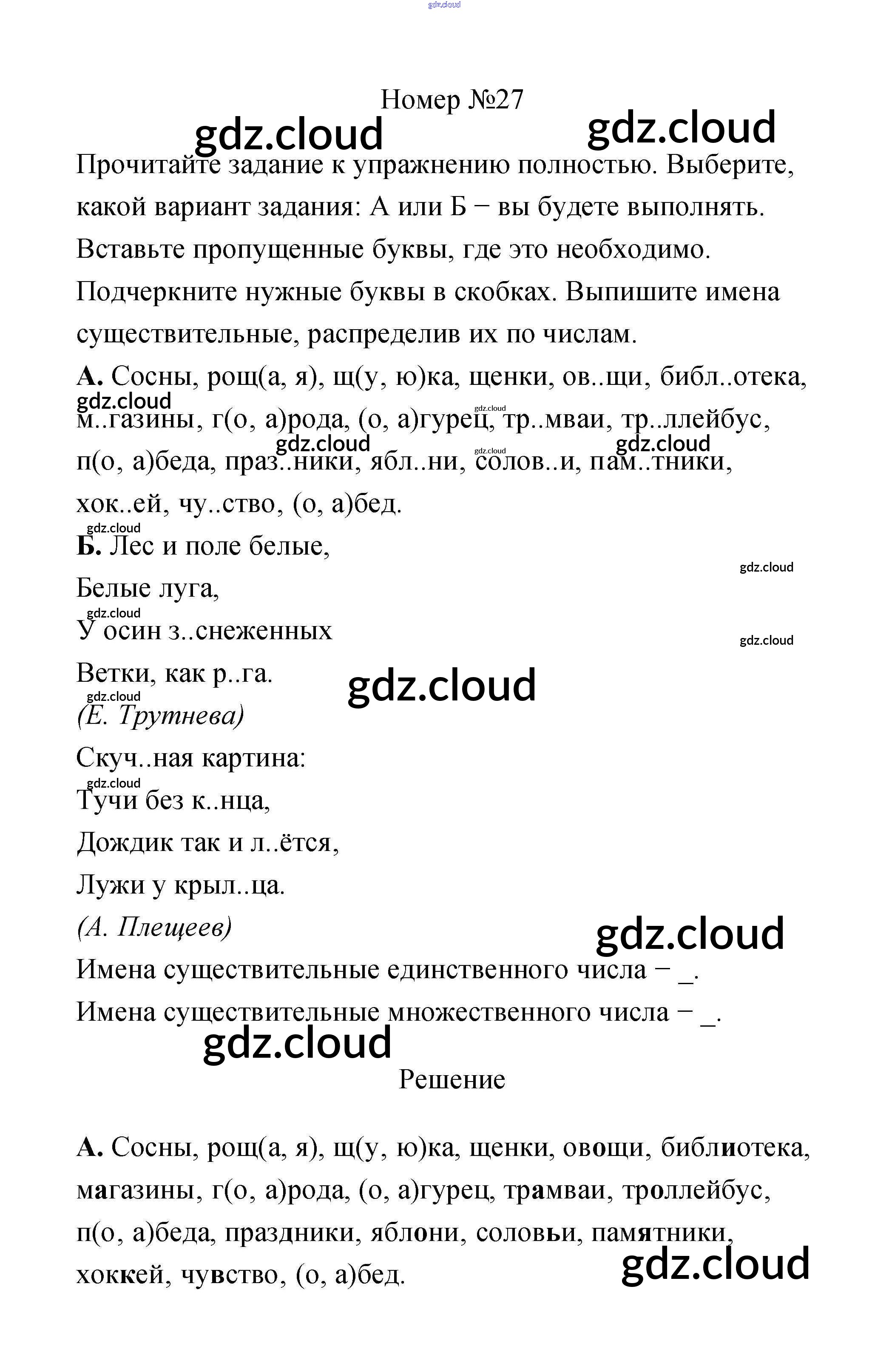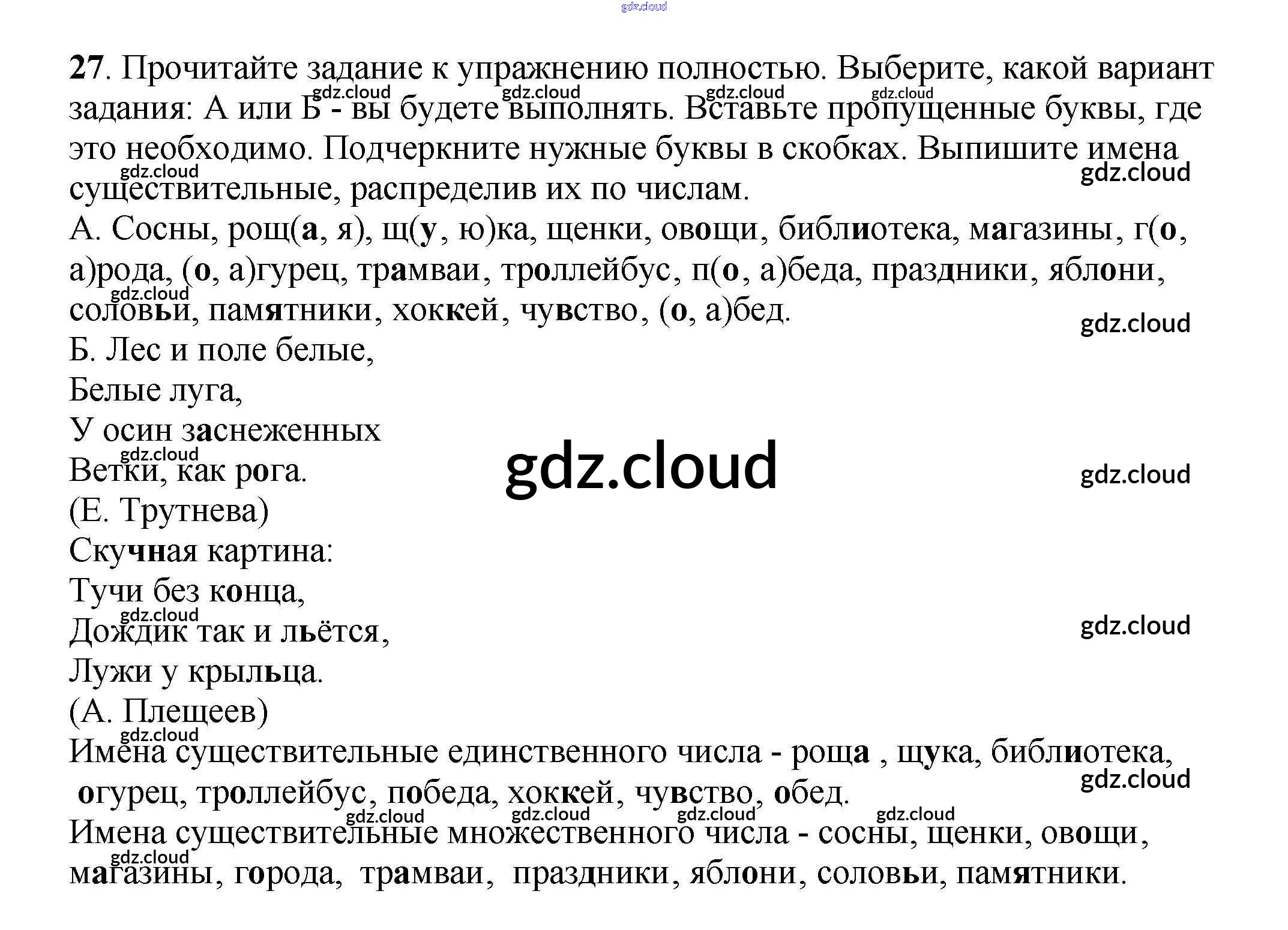 Ответ на задание 27 Рабочая тетрадь Русский язык за 3 (третий) класс Климанова, Бабушкина Перспектива 2018 Часть 1, 2