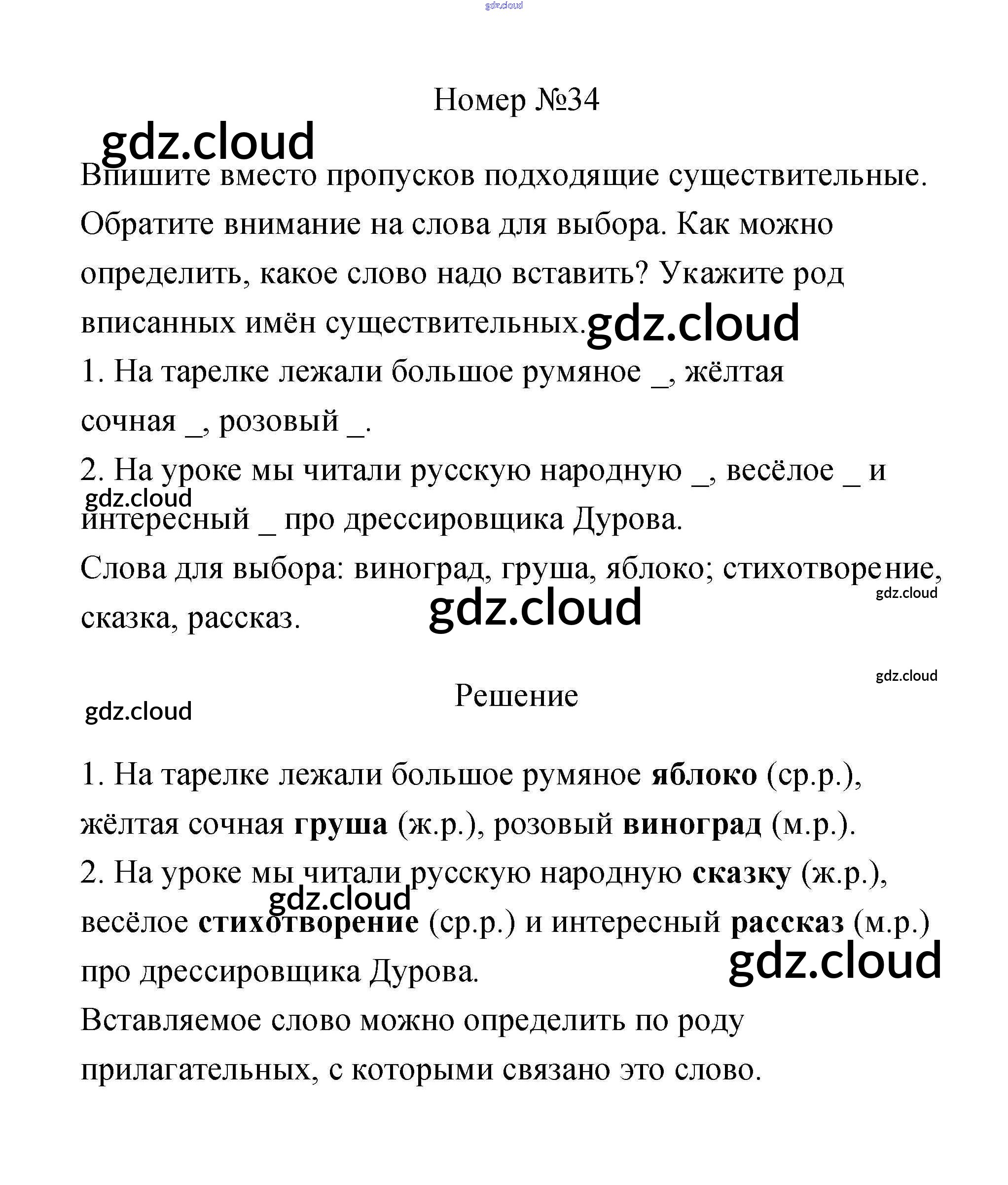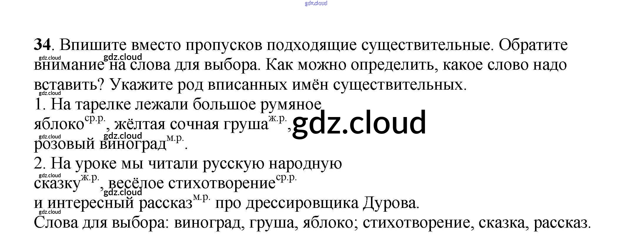 Ответ на задание 34 Рабочая тетрадь Русский язык за 3 (третий) класс Климанова, Бабушкина Перспектива 2018 Часть 1, 2