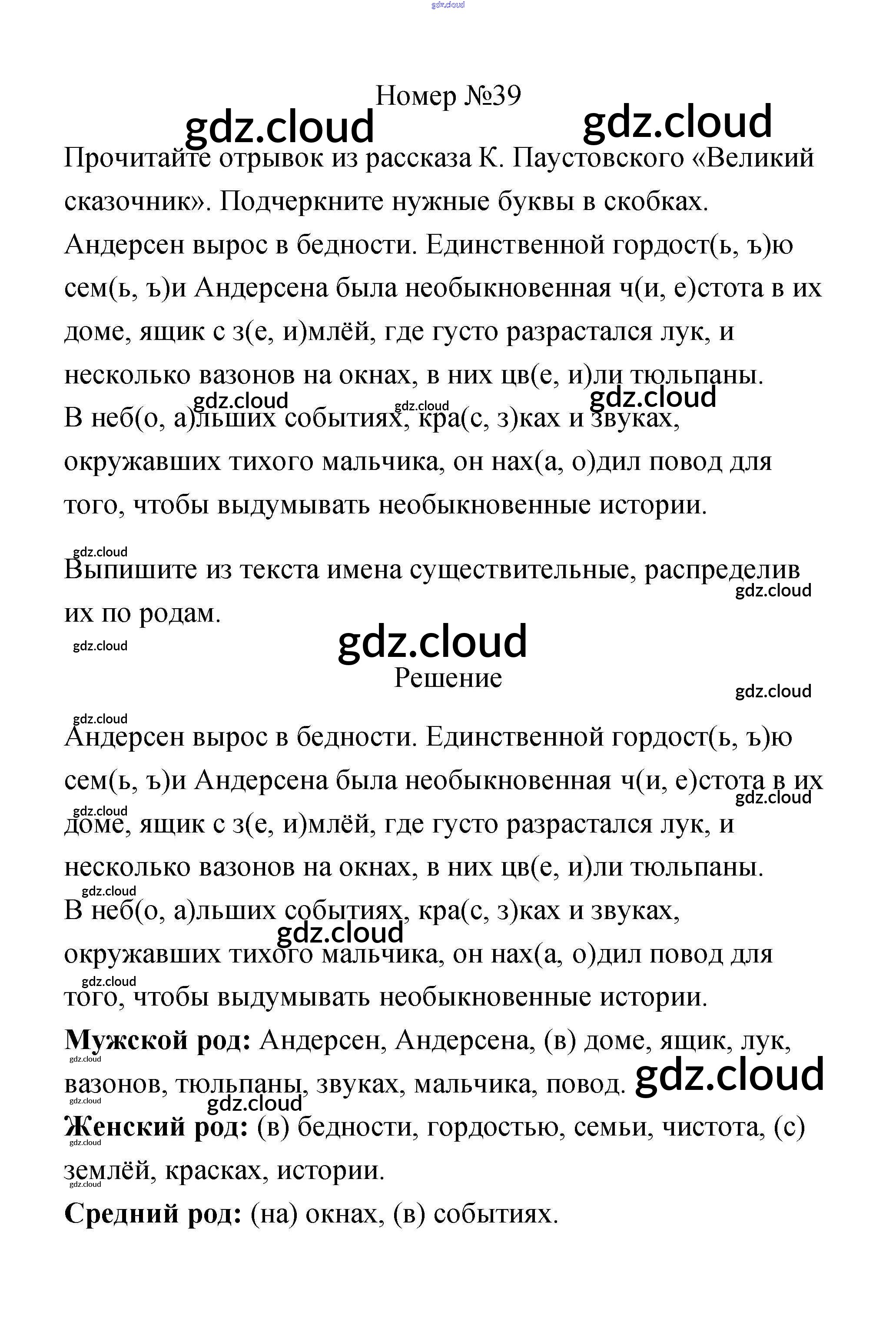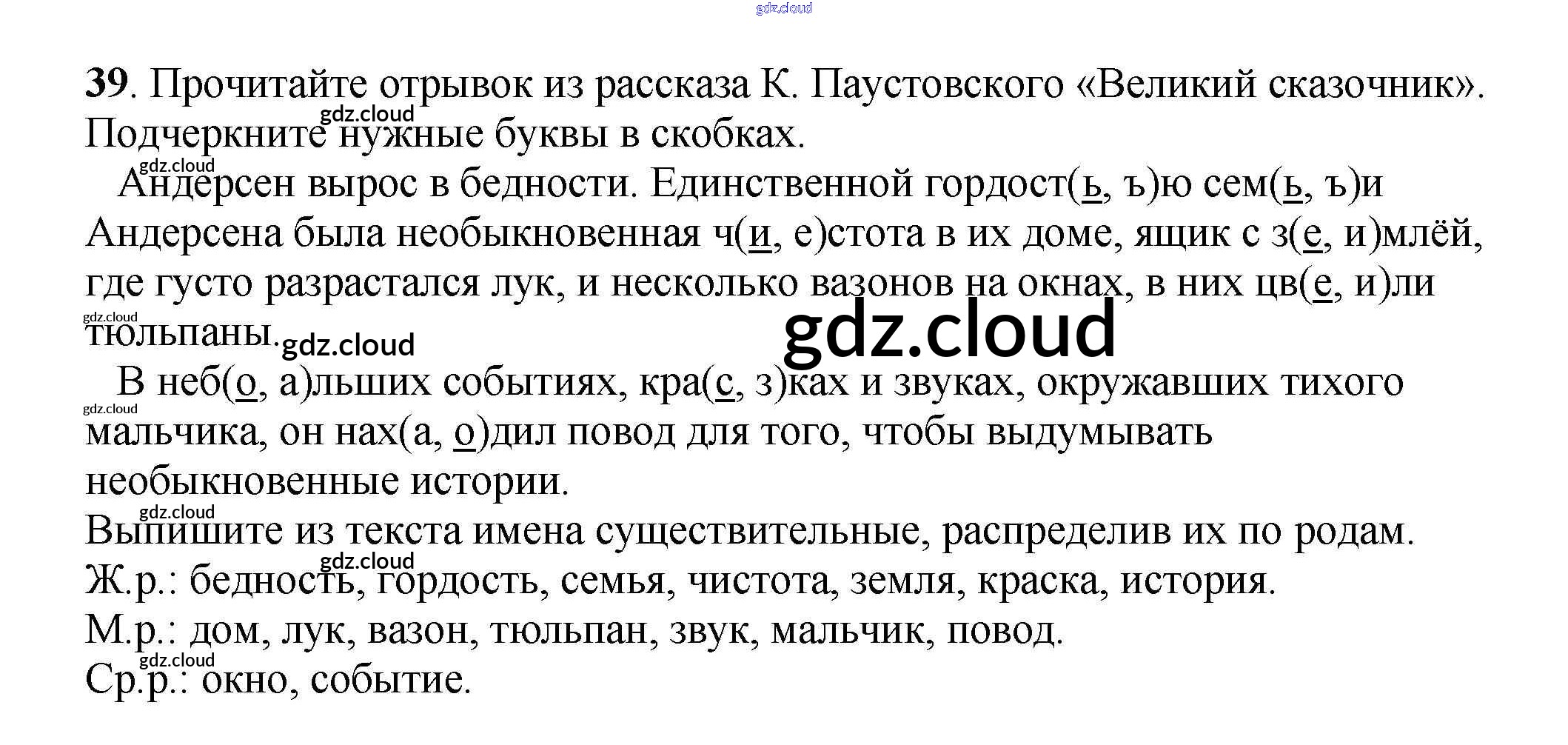 Ответ на задание 39 Рабочая тетрадь Русский язык за 3 (третий) класс Климанова, Бабушкина Перспектива 2018 Часть 1, 2
