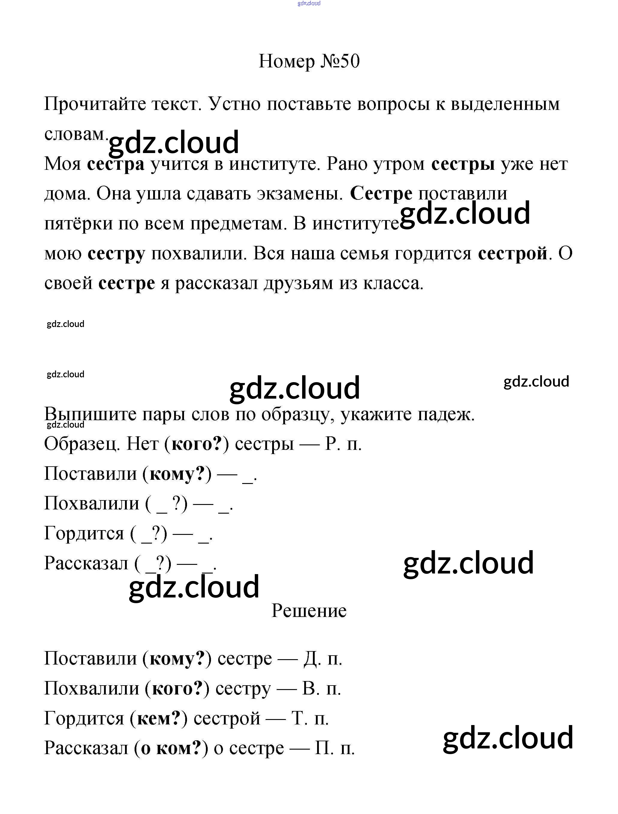 Ответ на задание 50 Рабочая тетрадь Русский язык за 3 (третий) класс Климанова, Бабушкина Перспектива 2018 Часть 1, 2