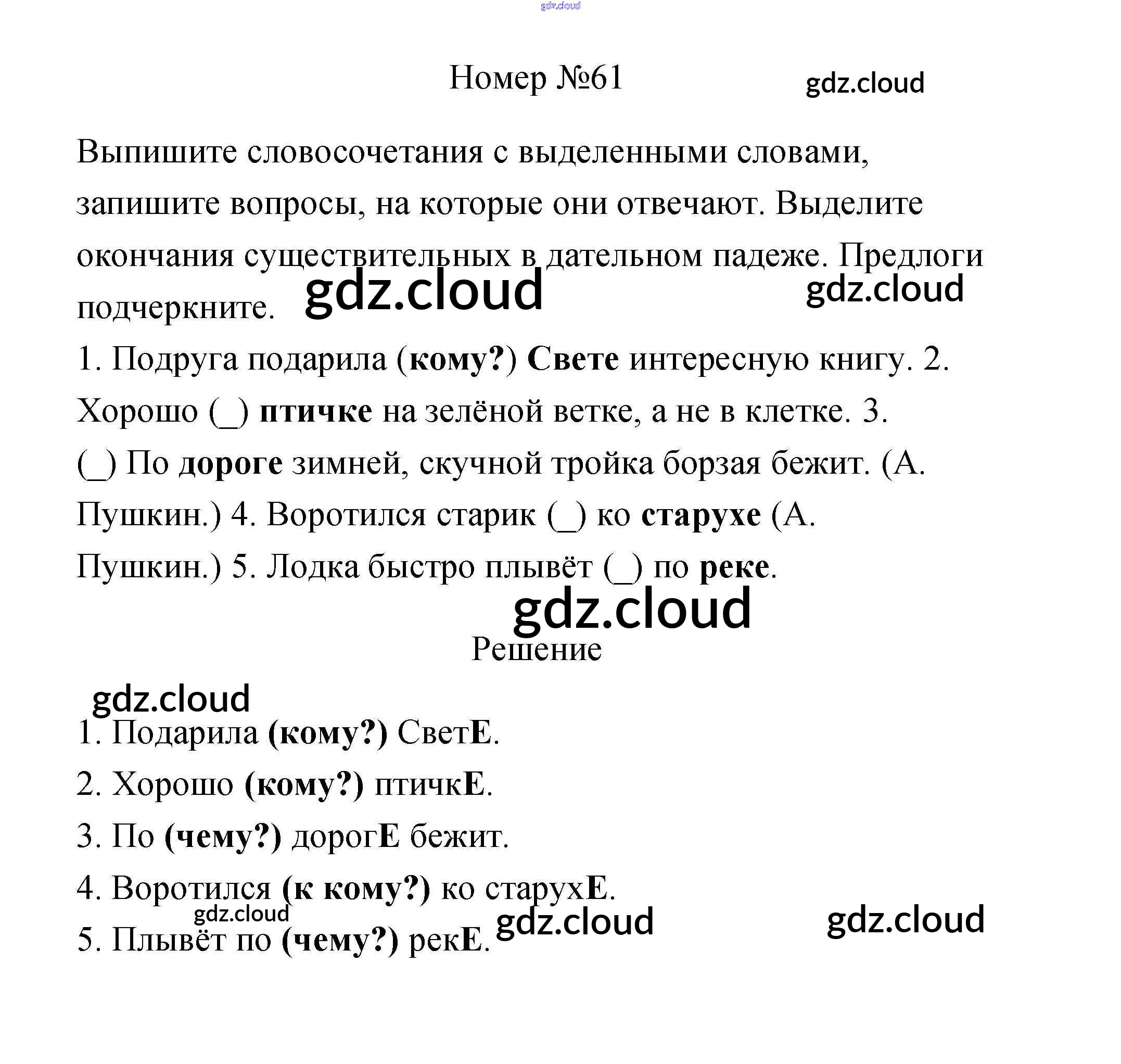 Ответ на задание 61 Рабочая тетрадь Русский язык за 3 (третий) класс Климанова, Бабушкина Перспектива 2018 Часть 1, 2