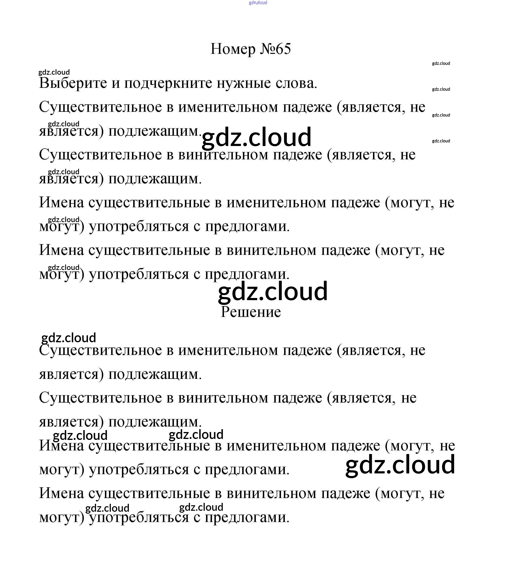 Ответ на задание 65 Рабочая тетрадь Русский язык за 3 (третий) класс Климанова, Бабушкина Перспектива 2018 Часть 1, 2