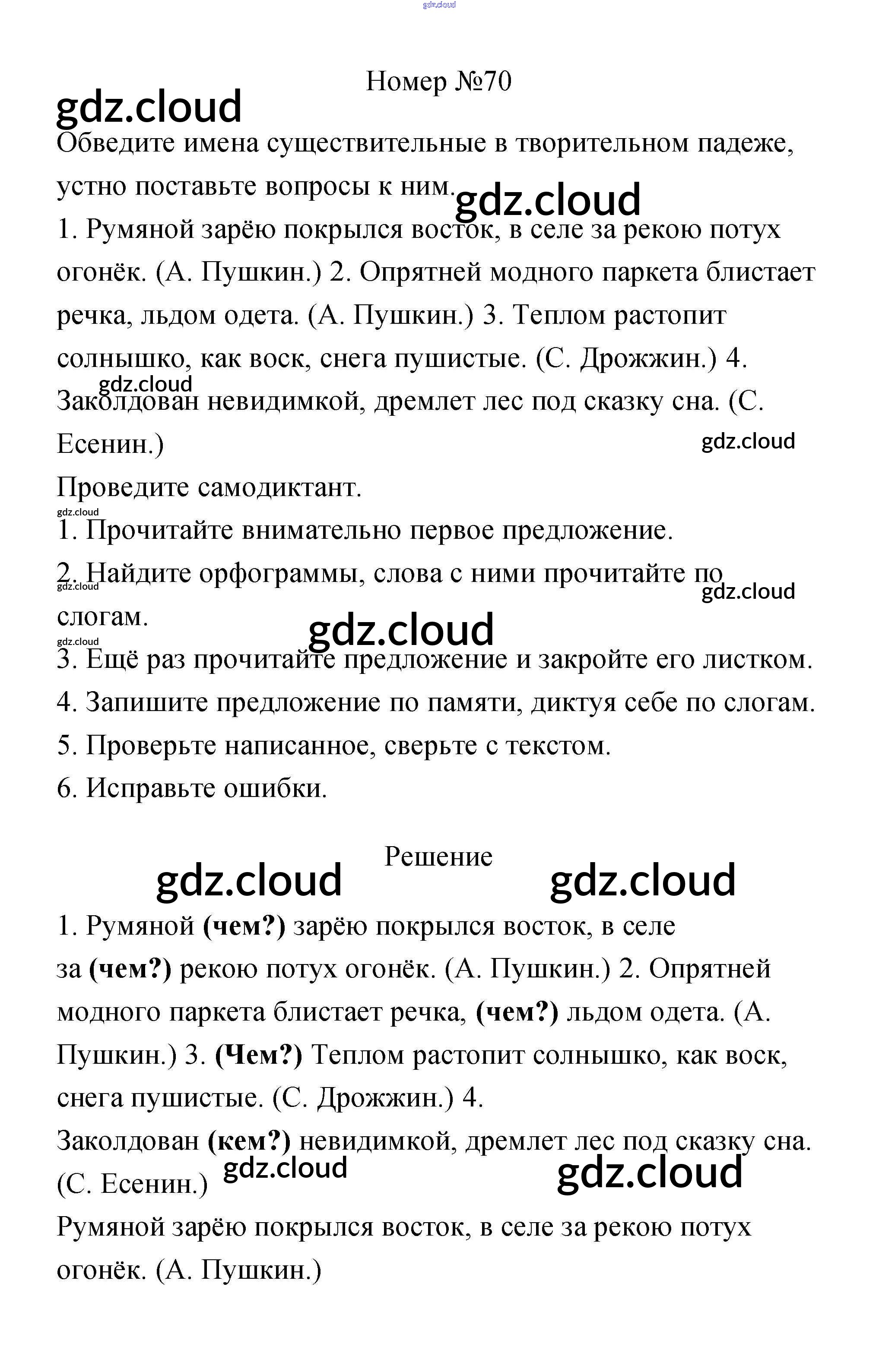 Ответ на задание 70 Рабочая тетрадь Русский язык за 3 (третий) класс Климанова, Бабушкина Перспектива 2018 Часть 1, 2