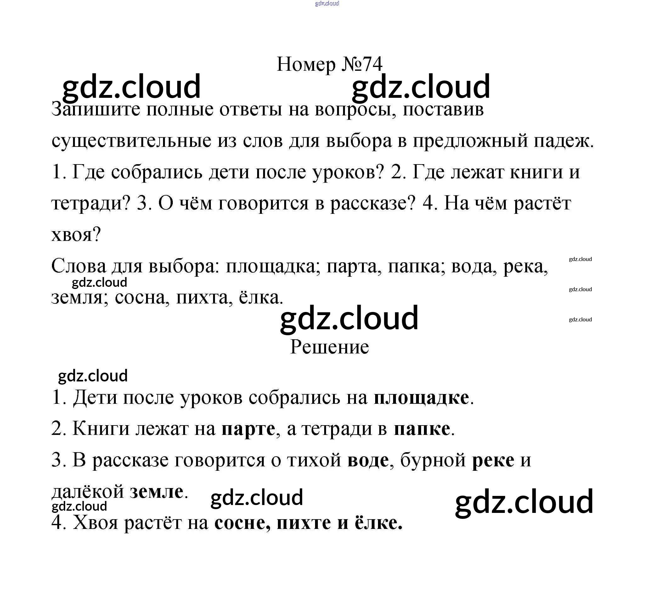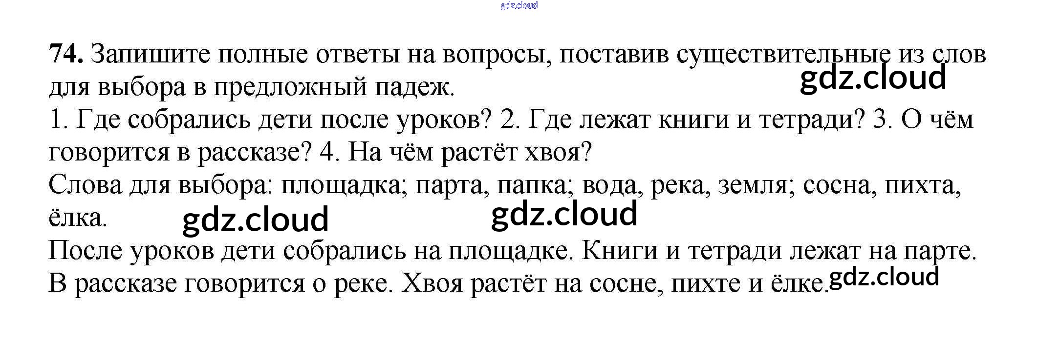 Ответ на задание 74 Рабочая тетрадь Русский язык за 3 (третий) класс Климанова, Бабушкина Перспектива 2018 Часть 1, 2