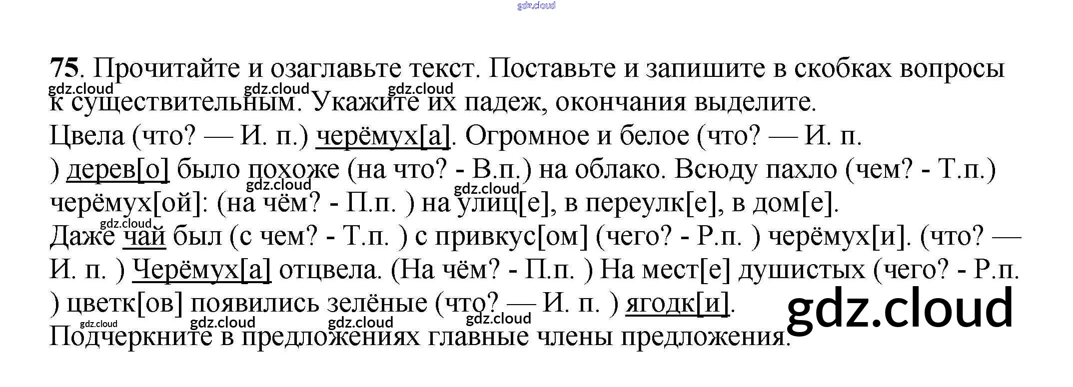 Ответ на задание 75 Рабочая тетрадь Русский язык за 3 (третий) класс Климанова, Бабушкина Перспектива 2018 Часть 1, 2