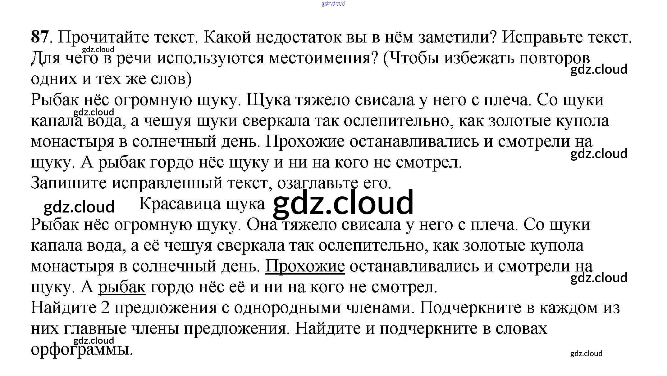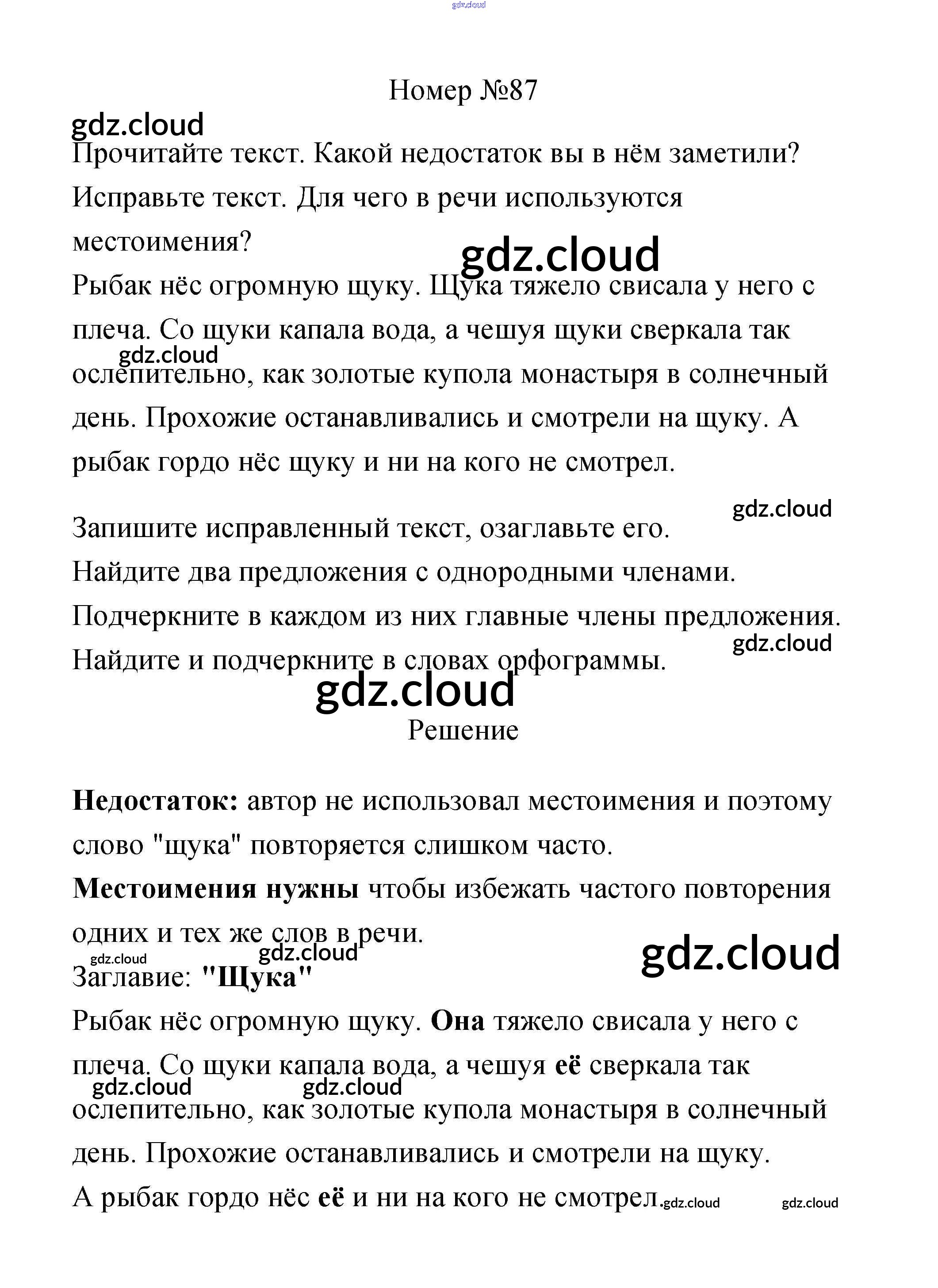 Ответ на задание 87 Рабочая тетрадь Русский язык за 3 (третий) класс Климанова, Бабушкина Перспектива 2018 Часть 1, 2