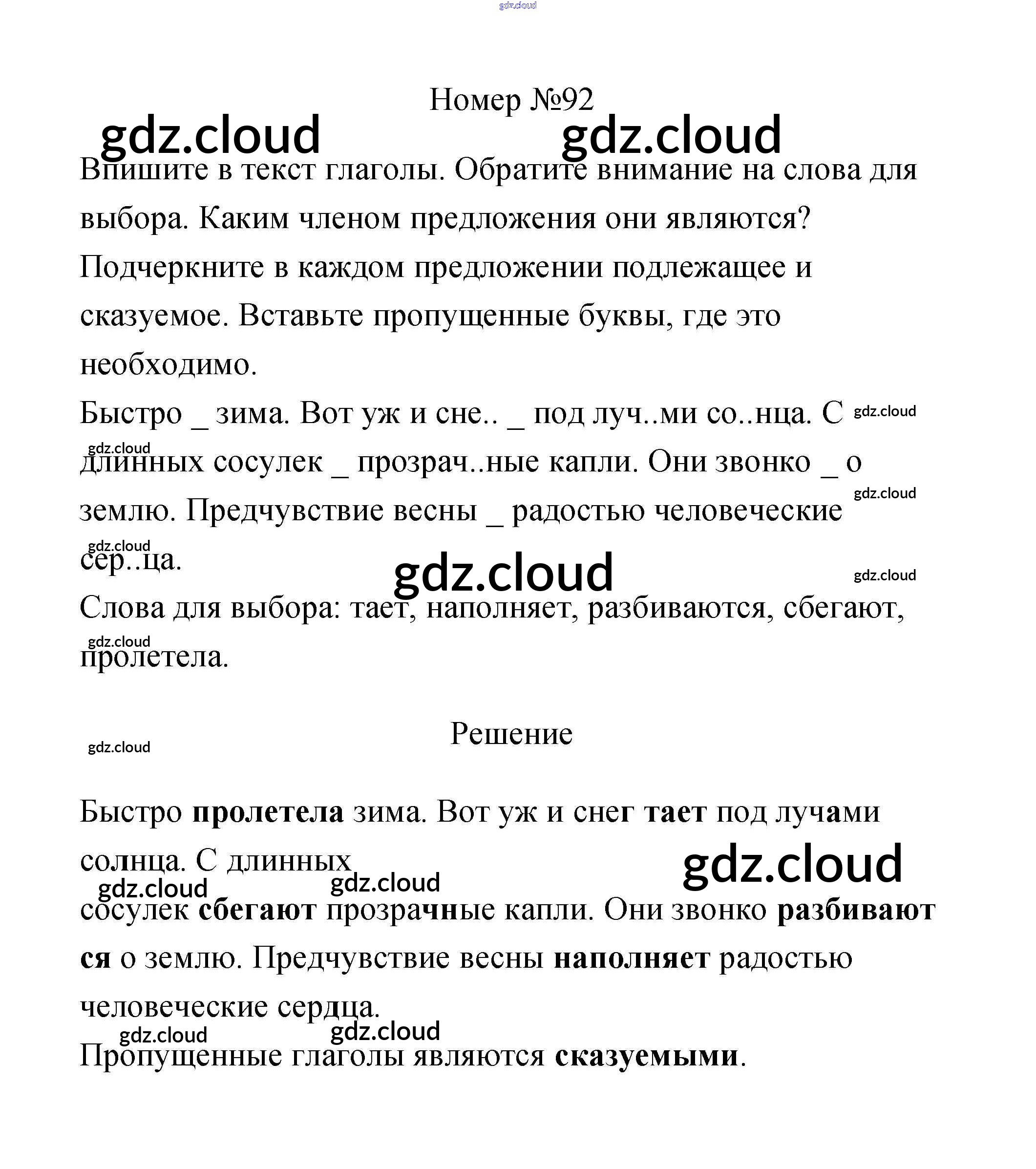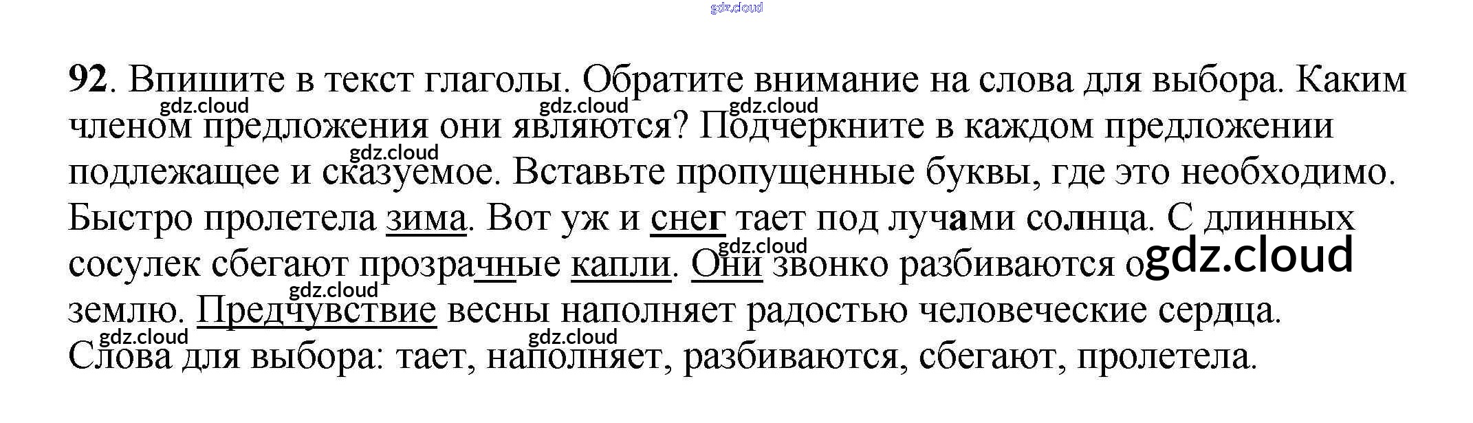 Ответ на задание 92 Рабочая тетрадь Русский язык за 3 (третий) класс Климанова, Бабушкина Перспектива 2018 Часть 1, 2