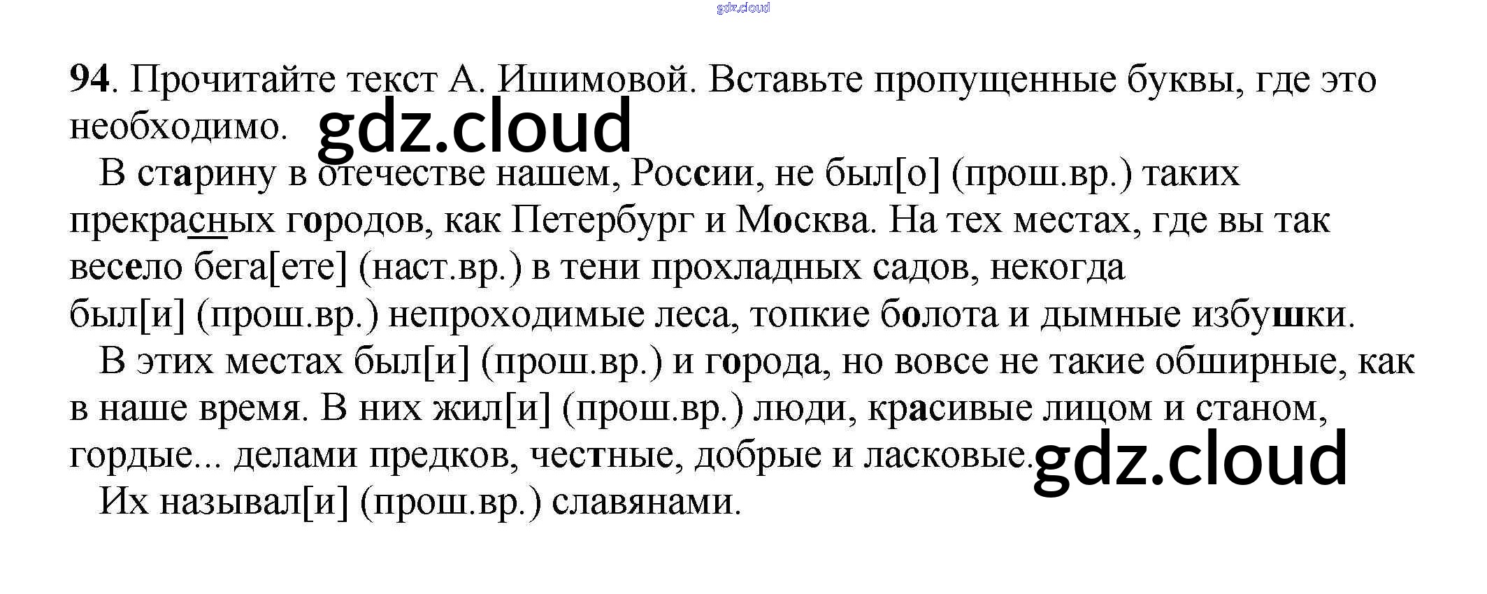Ответ на задание 94 Рабочая тетрадь Русский язык за 3 (третий) класс Климанова, Бабушкина Перспектива 2018 Часть 1, 2