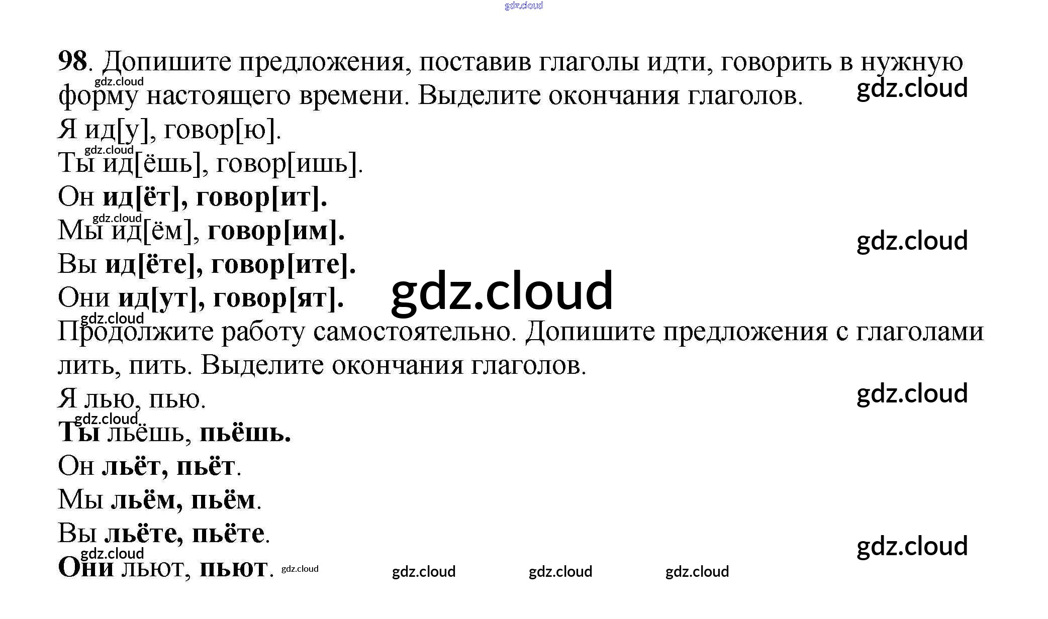 Ответ на задание 98 Рабочая тетрадь Русский язык за 3 (третий) класс Климанова, Бабушкина Перспектива 2018 Часть 1, 2