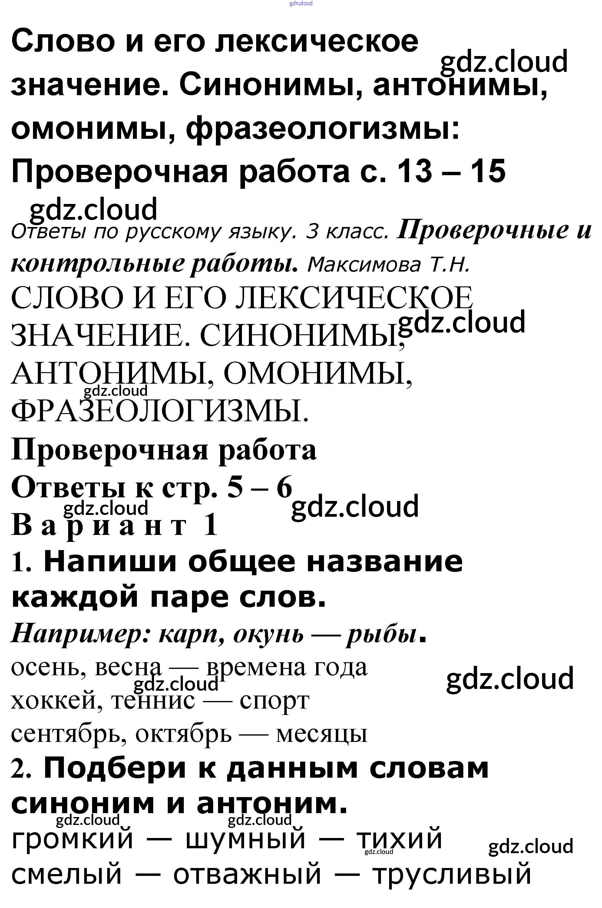 Ответ на задание 13-15 Проверочные и контрольные работы Русский язык за 3 (третий) класс Максимова 2018