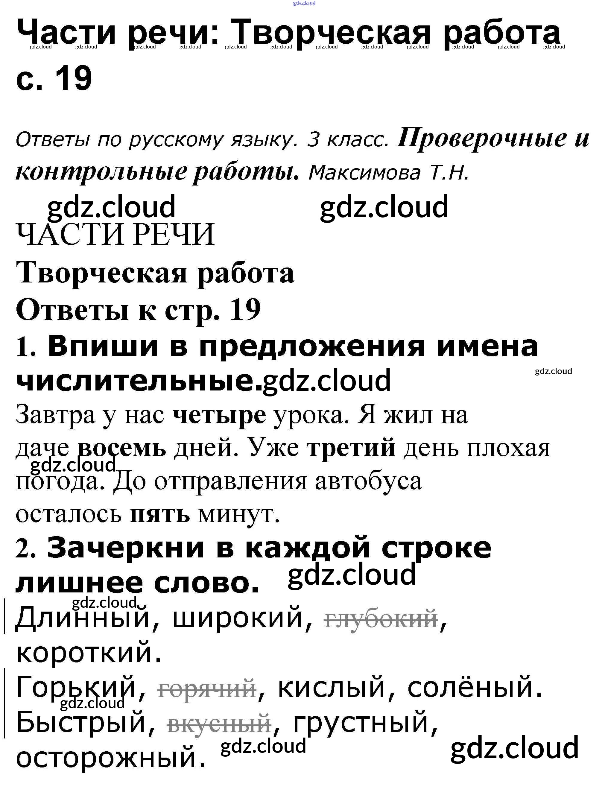 Ответ на задание 19 Проверочные и контрольные работы Русский язык за 3 (третий) класс Максимова 2018 ФГОС онлайн и без номера телефона.