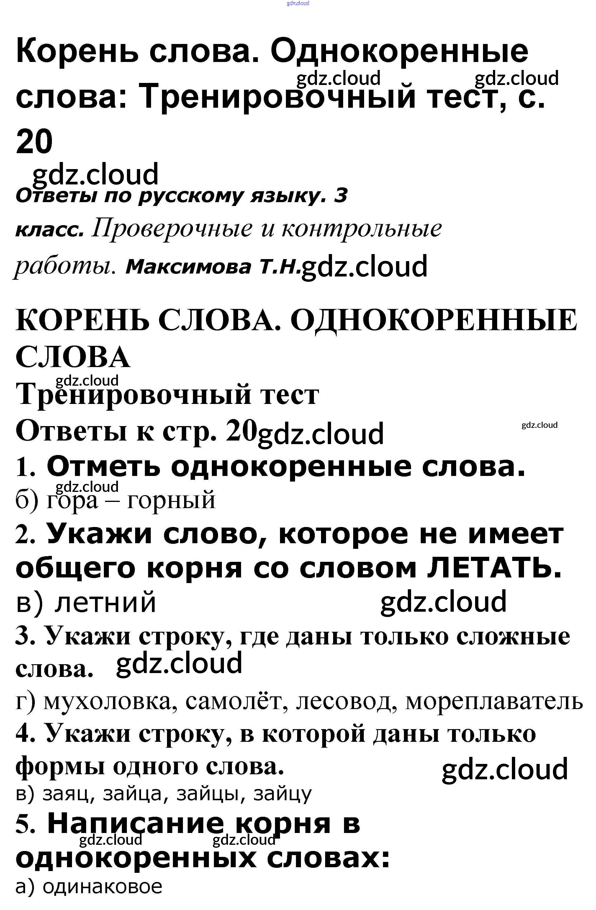 Ответ на задание 20 Проверочные и контрольные работы Русский язык за 3 (третий) класс Максимова 2018