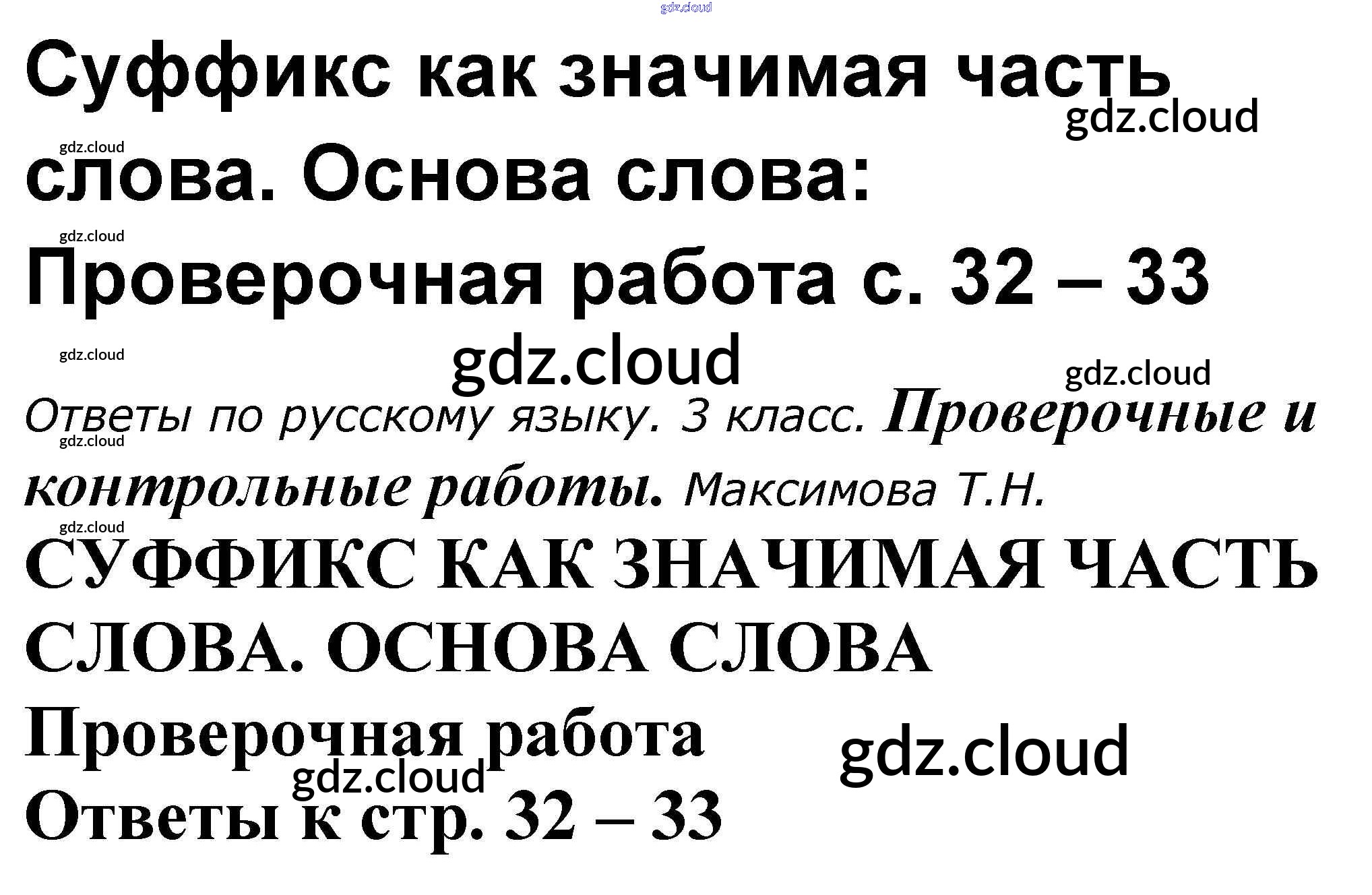 Ответы к теме: Суффикс как значимая часть слова. Основа слова по Русскому языку 3 класс Проверочные и контрольные работы Максимова ВАКО