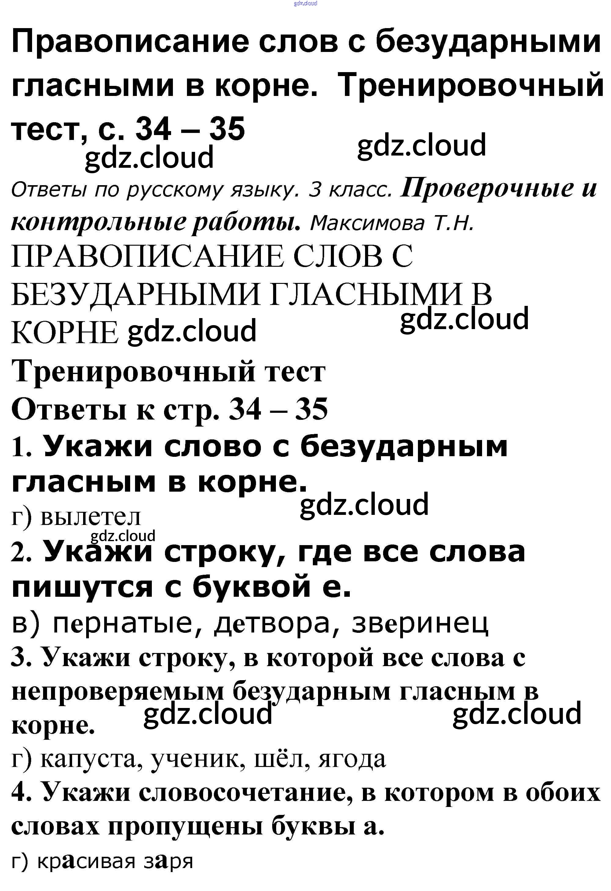 Ответ на задание 34-35 Проверочные и контрольные работы Русский язык за 3 (третий) класс Максимова 2018