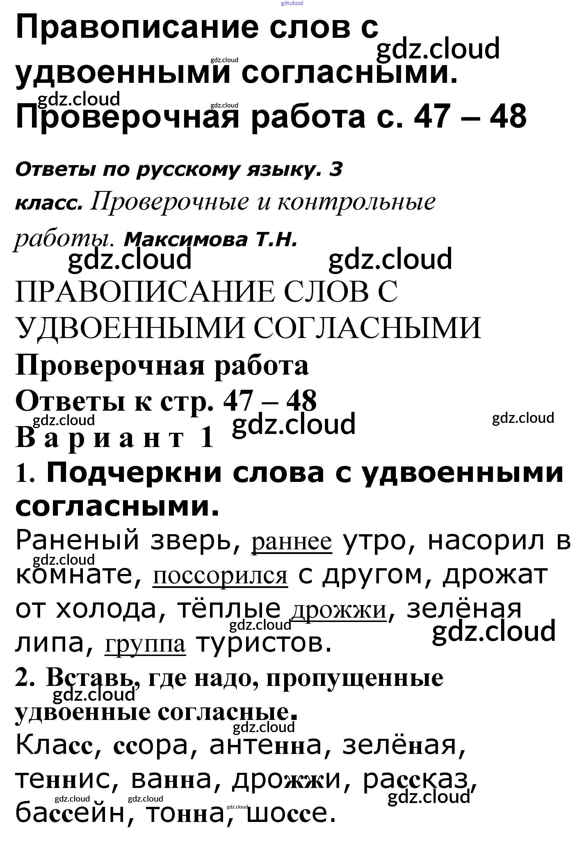 Ответ на задание 47-48 Проверочные и контрольные работы Русский язык за 3 (третий) класс Максимова 2018